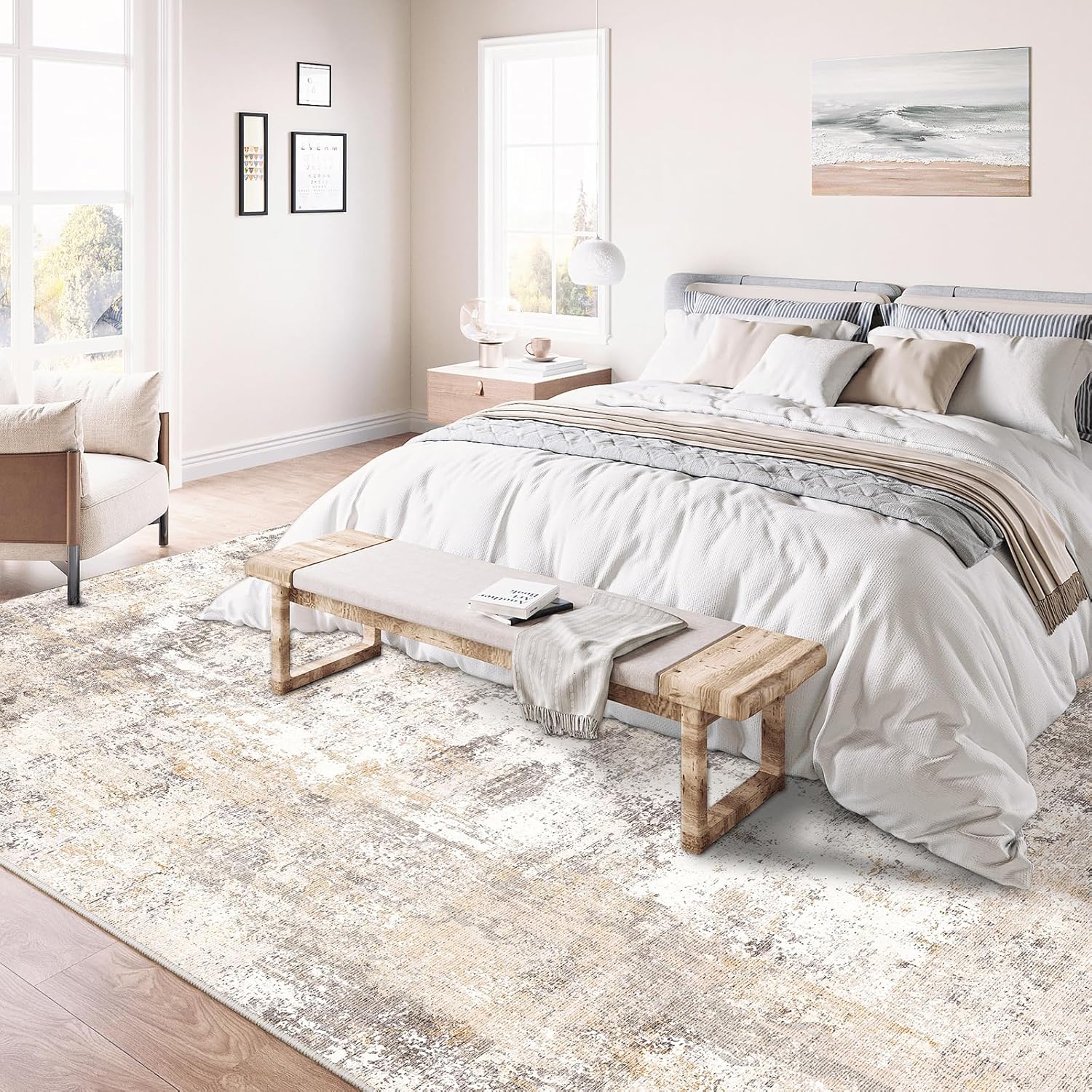 10x12 Washable Area Rug Beige Grey Neutral Abstract Living Room Bedroom Large Throw Rug Non Slip Soft Low Pile Indoor Floor Carpet for Dining Room Kitchen Office Entryway