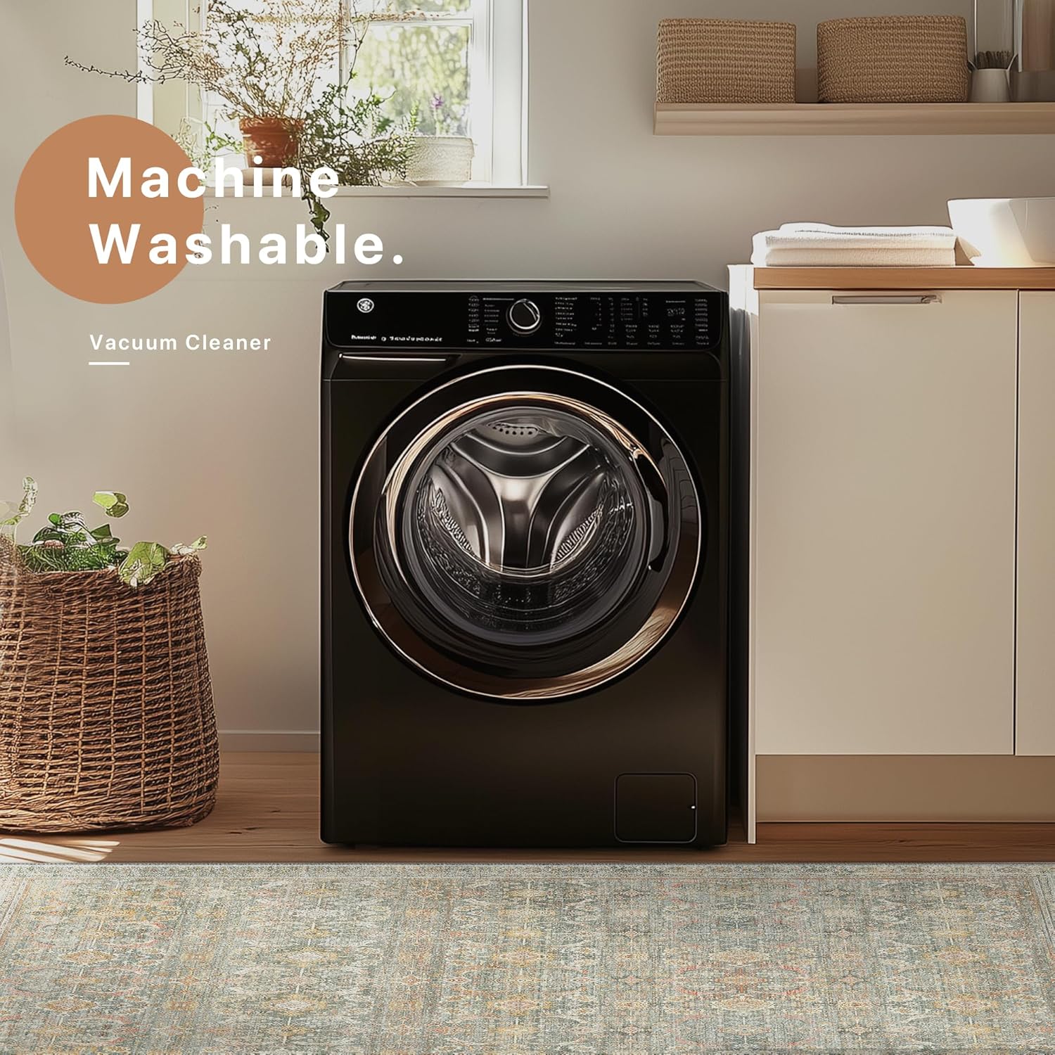 10X14 Area Rugs Machine Washable Rugs for Living Room, Vintage Boho Large Rugs for Bedroom Dining Room, Non Slip Indoor Soft Distressed Lightweight Thin Low Pile Carpet, Turmeric