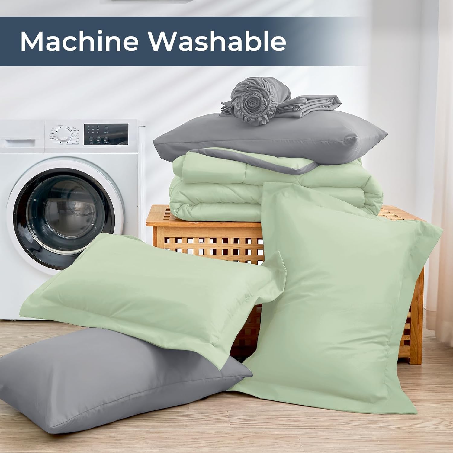 HEVUMYI Full Comforter Set - 7-Piece All Season Bed in a Bag Full, Ultra Soft Bedding Set with Comforter, Flat Sheet, Fitted Sheet, Pillowcases, Pillow Shams, Sage Green & Light Grey