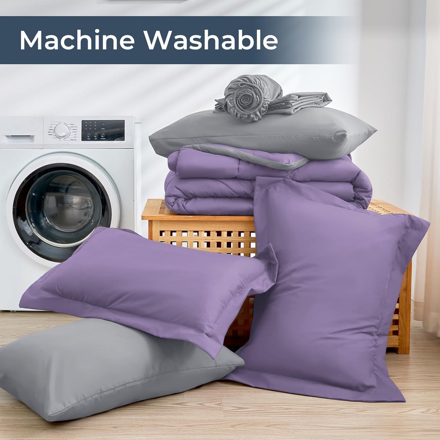 HEVUMYI Full Comforter Set - 7-Piece All Season Bed in a Bag Full, Ultra Soft Bedding Set with Comforter, Flat Sheet, Fitted Sheet, Pillowcases, Pillow Shams, Purple & Light Grey