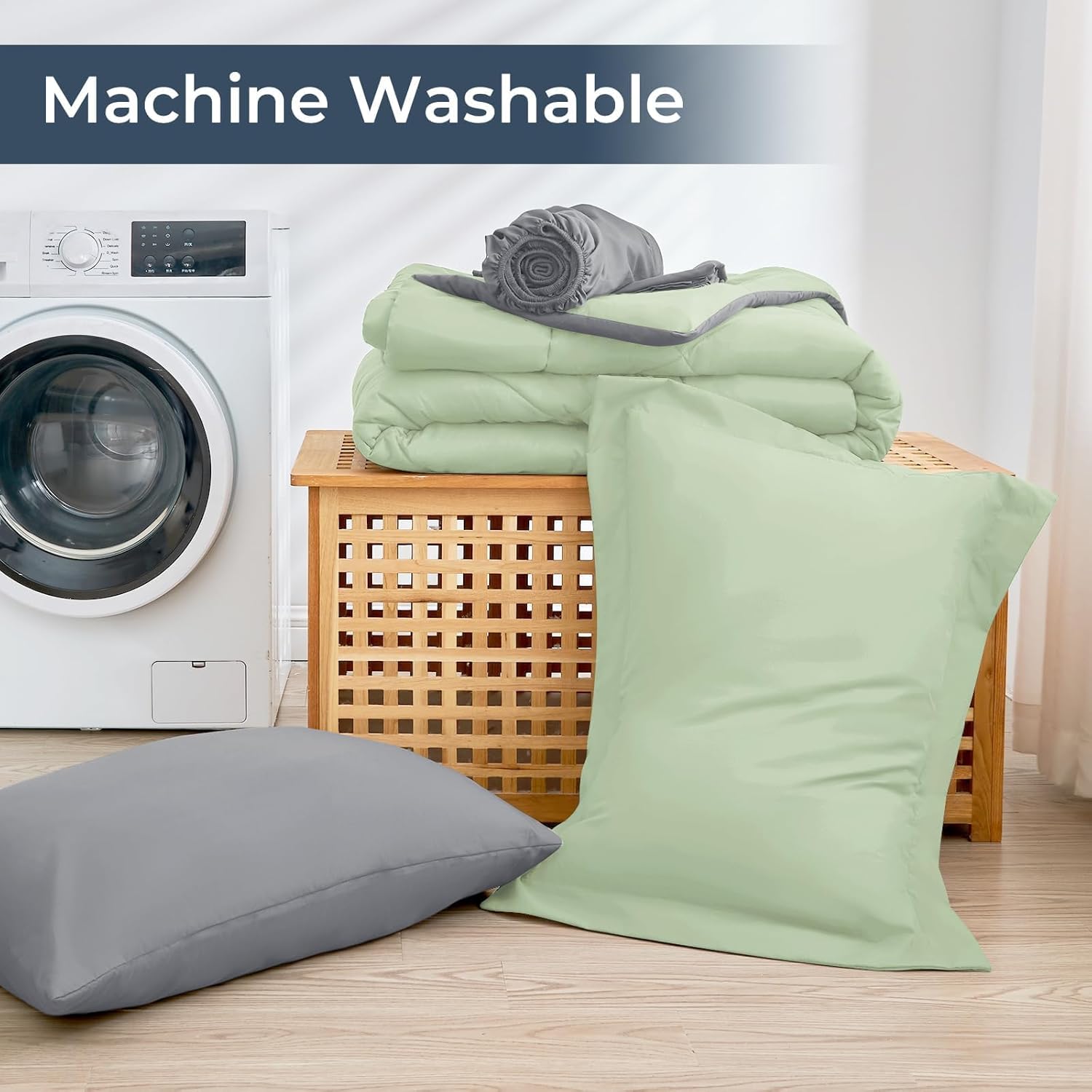 HEVUMYI Twin-XL Comforter Set - 5-Piece All Season Bed in a Bag Twin-XL, Ultra Soft Bedding Set with Comforter, Flat Sheet, Fitted Sheet, Pillowcases, Pillow Shams, Sage Green & Light Grey