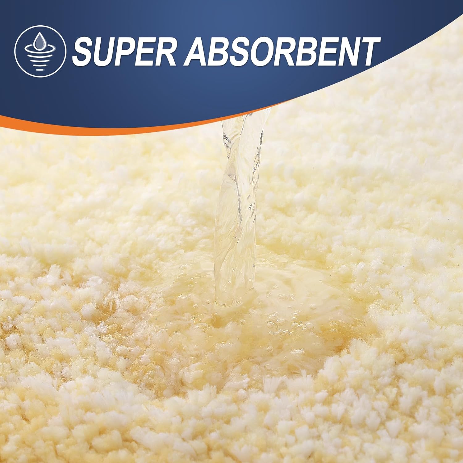 - [Ultra-Absorbent and Quick-Drying] Our bath mat features a soft shaggy microfiber fabric that absorbs water as you step out of the bath, shower, or while getting ready by the sink. The mat's deep pile efficiently traps moisture, allowing it to dry quickly and keep your rug clean and dry.