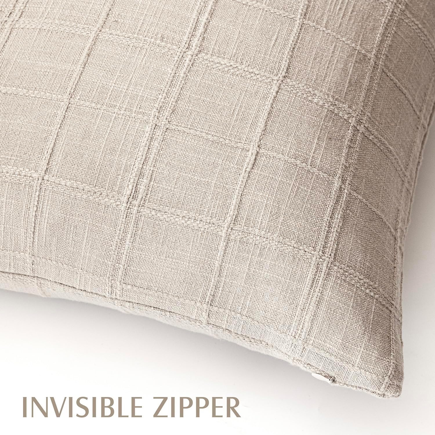 Foindtower Set of 2 Decorative Linen Check Throw Pillow Covers Neutral Farmhouse Lumbar Cushion Covers Modern Boho Home Decor for Sofa Chair Couch Bedroom Living Room Outdoor,12×20 Inch,Natural Linen