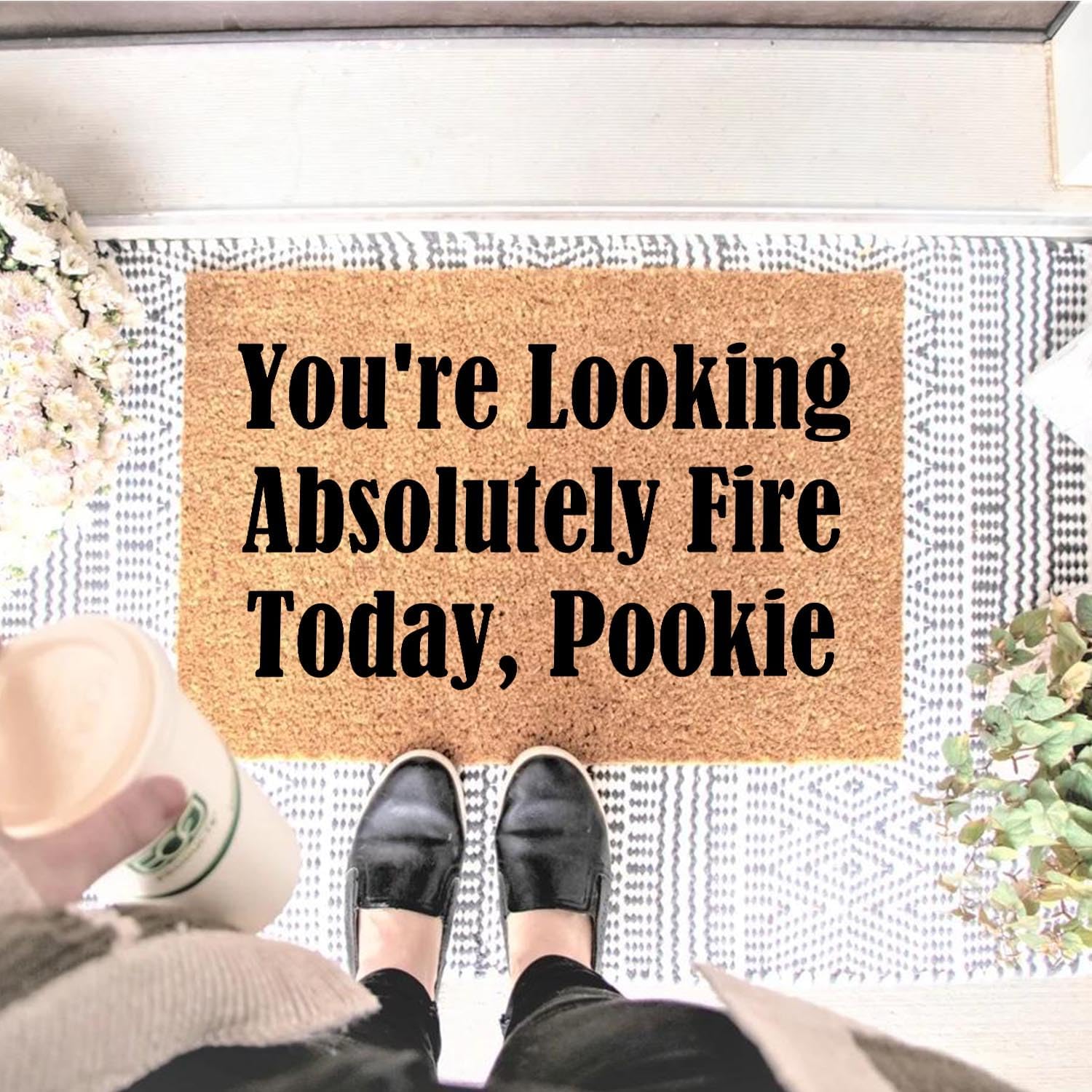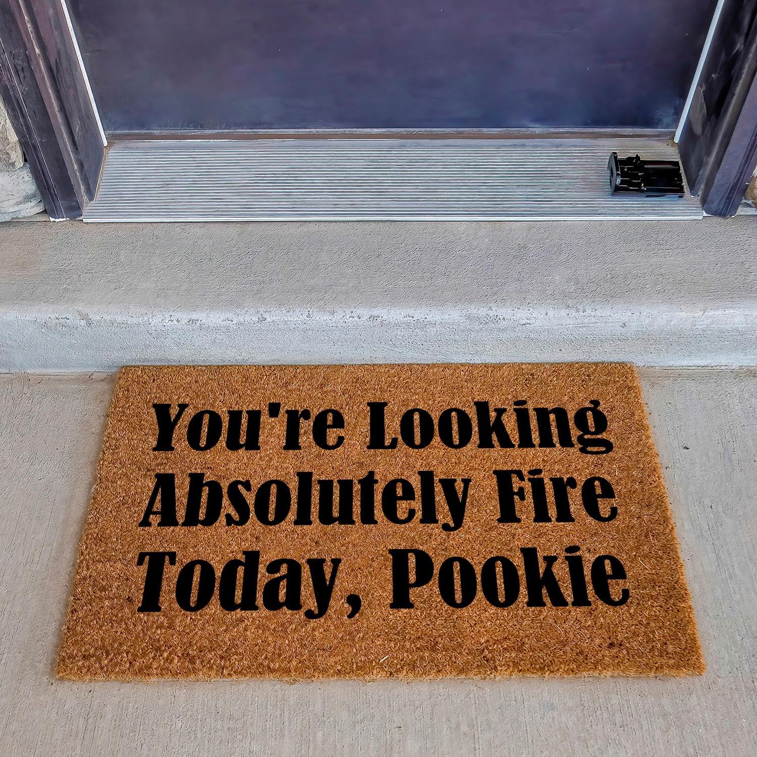 Funny Coir Doormat You're Looking Absolutely Fire Today, Pookie Front Door Mat Entryway Outdoor Mat with Heavy Duty Front Porch Welcome Mats House Warming Gift Mat Outdoor Decor Rugs 23.7x15.7 inch