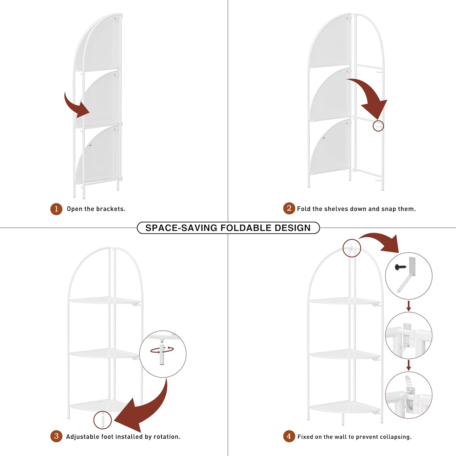 - 【Foldable Design And Effortless Assembly】Our Crofy corner shelf can be folded to store when not in use. You can fold or unfold it in a few seconds without any assembly. With its foldable design, it only takes up a small space, which can save your space.