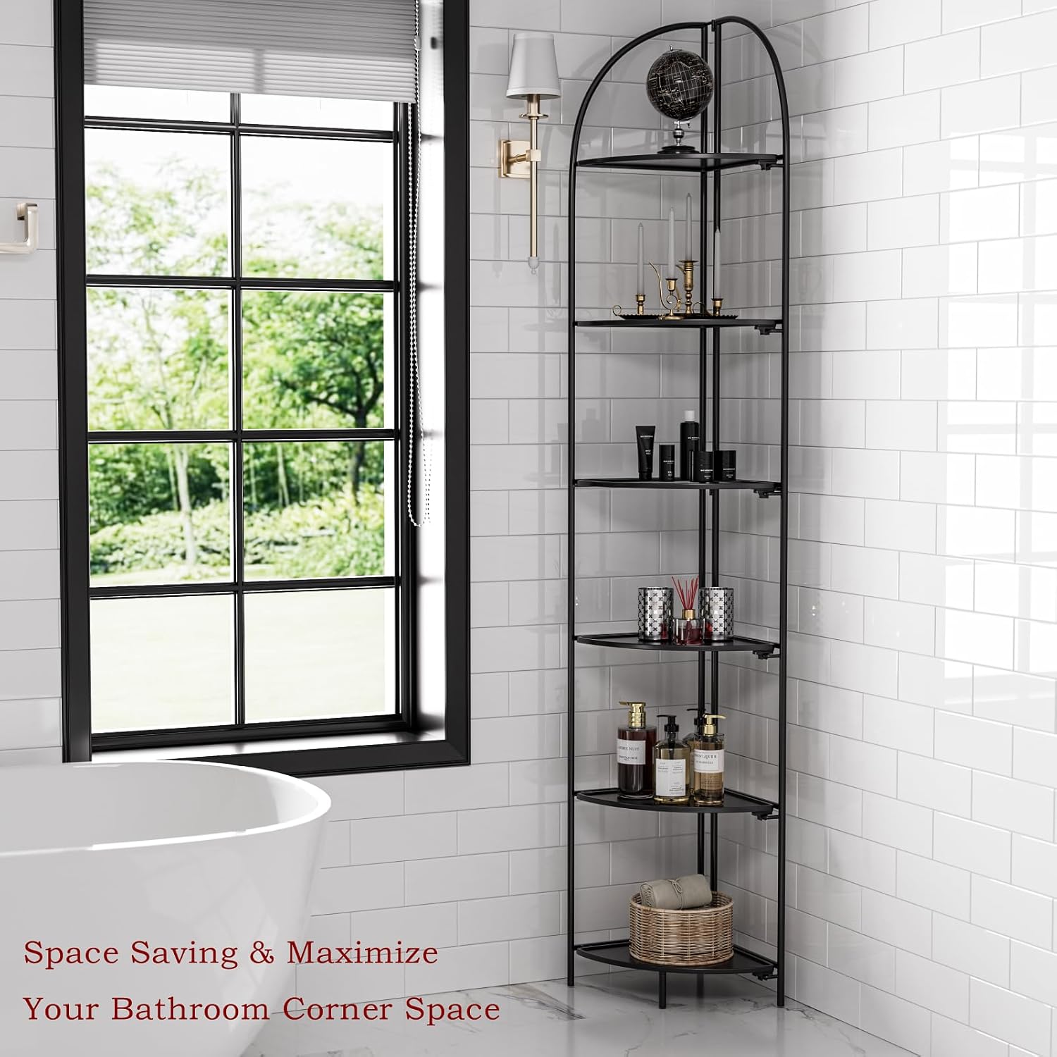 - 【Large Storage Capacity Corner Shelves】The height of the 6-tier corner shelf stand is 83.9 inches, the shelf radius is 12.8 inches, and the space between shelves is 13.1 inches, this tall shelf provides you with ample storage space to store Your books, photo frames, decorations, centerpieces, potted plants and other household items.