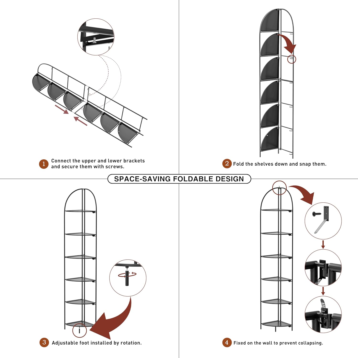 - 【Foldable Design And Effortless Assembly】Our Crofy corner shelf can be folded to store when not in use. You can fold or unfold it in a few seconds without any assembly. With its foldable design, it only takes up a small space, which can save your space.