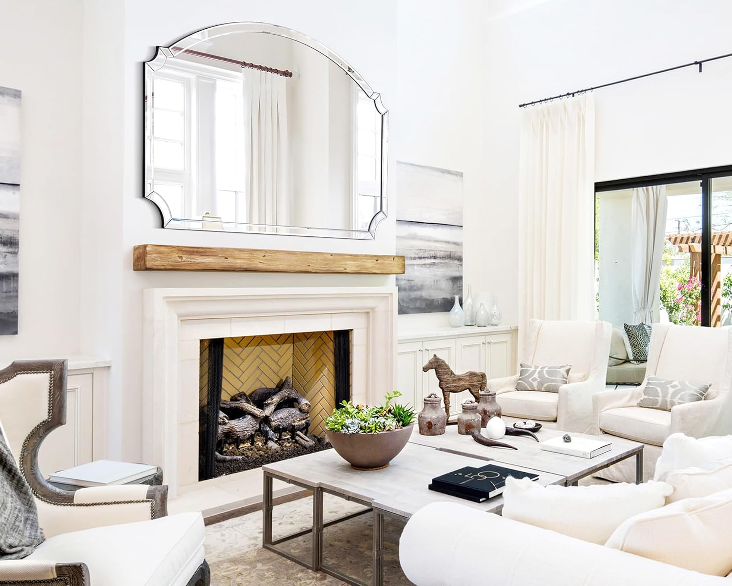Chende Large Arched Wall Mirror with Glass Beveled Frame&Wood Backboard, 31.5" X 47.2" Horizontal Decorative Mirror Scalloped Corner for Bathroom, Living Room, Entryway, Bedroom