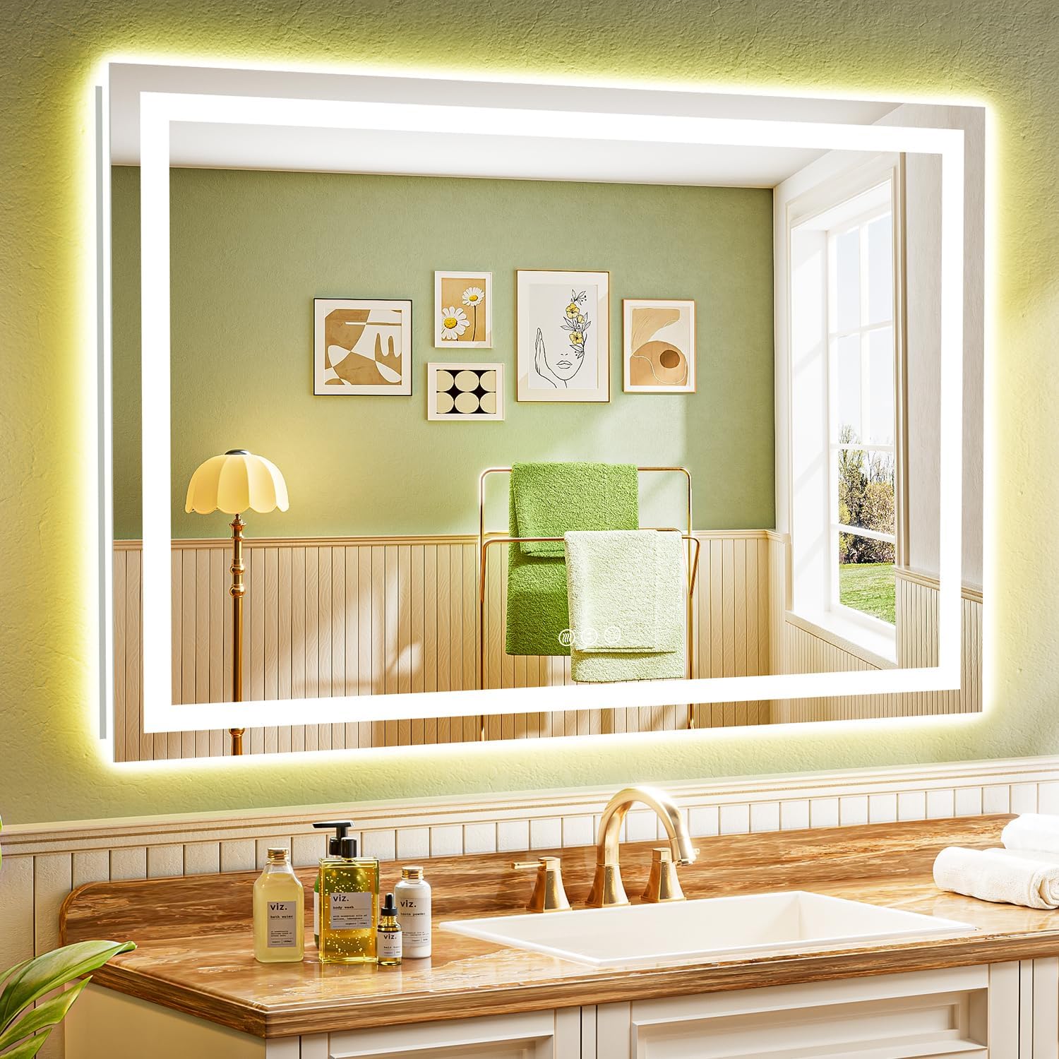 51x40 Inch LED Bathroom Mirror with Lights Front and Backlit Lighted Vanity Mirror for Bathroom Wall with 3 Colors Dimmable Anti-Fog Memory Shatter-Proof IP54 Waterproof Horizontal/Vertical