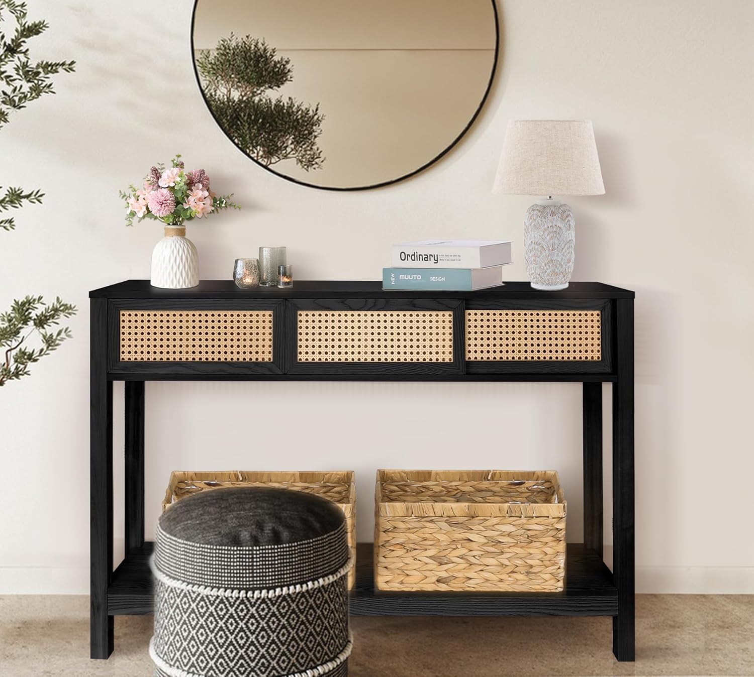 - 【Multi-purpose Foyer Table】– Use it as a console table in the entrance, a sofa table in living room, a vanity table in bedroom, TV stand in living room or a buffet table in dining room. Our rattan console table fits seamlessly into any space, enhancing the overall decor while offering practicality.