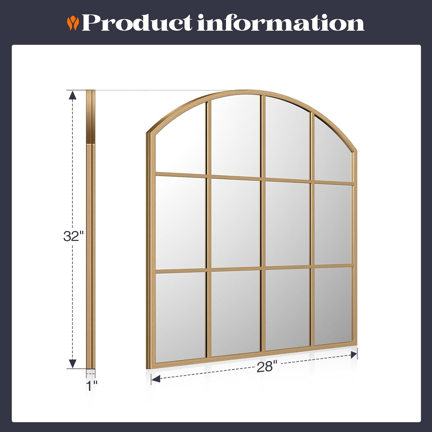 - HD Glass: The arched wall mirror is made of a full metal frame, which is rust-resistant. The high-definition 4 mm glass provides clear and undistorted reflections, enhancing the room's atmosphere