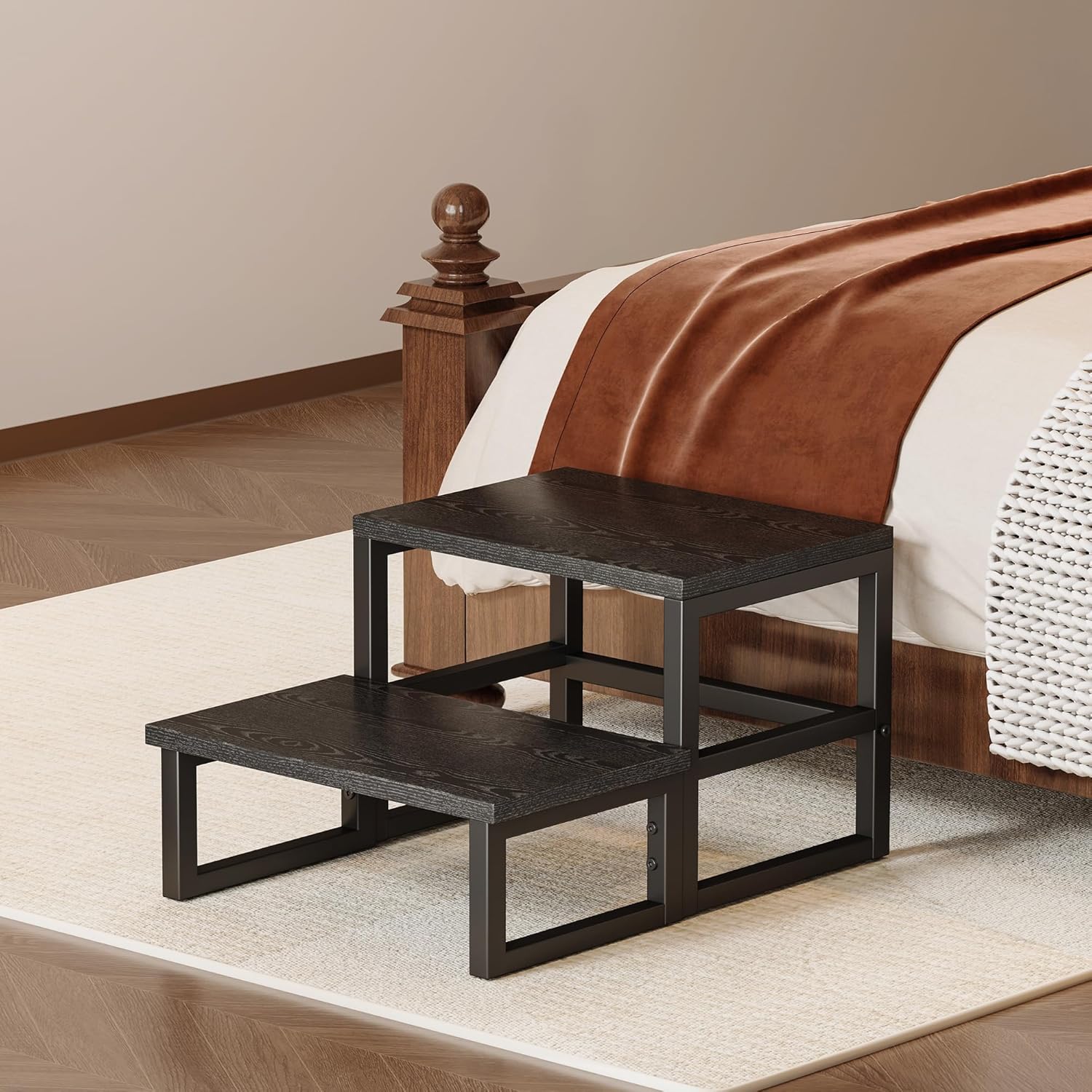 - 【LAST FOR LONG USE】Made of durable engineered wood planks and a sturdy metal frame, the back of the planks and the bottom crossbar provide extra stability, ensuring that the wooden step stool can withstand up to 400 pounds. In addition, each foot is equipped with non-slip pads to prevent accidental tipping and scratching of the floor.