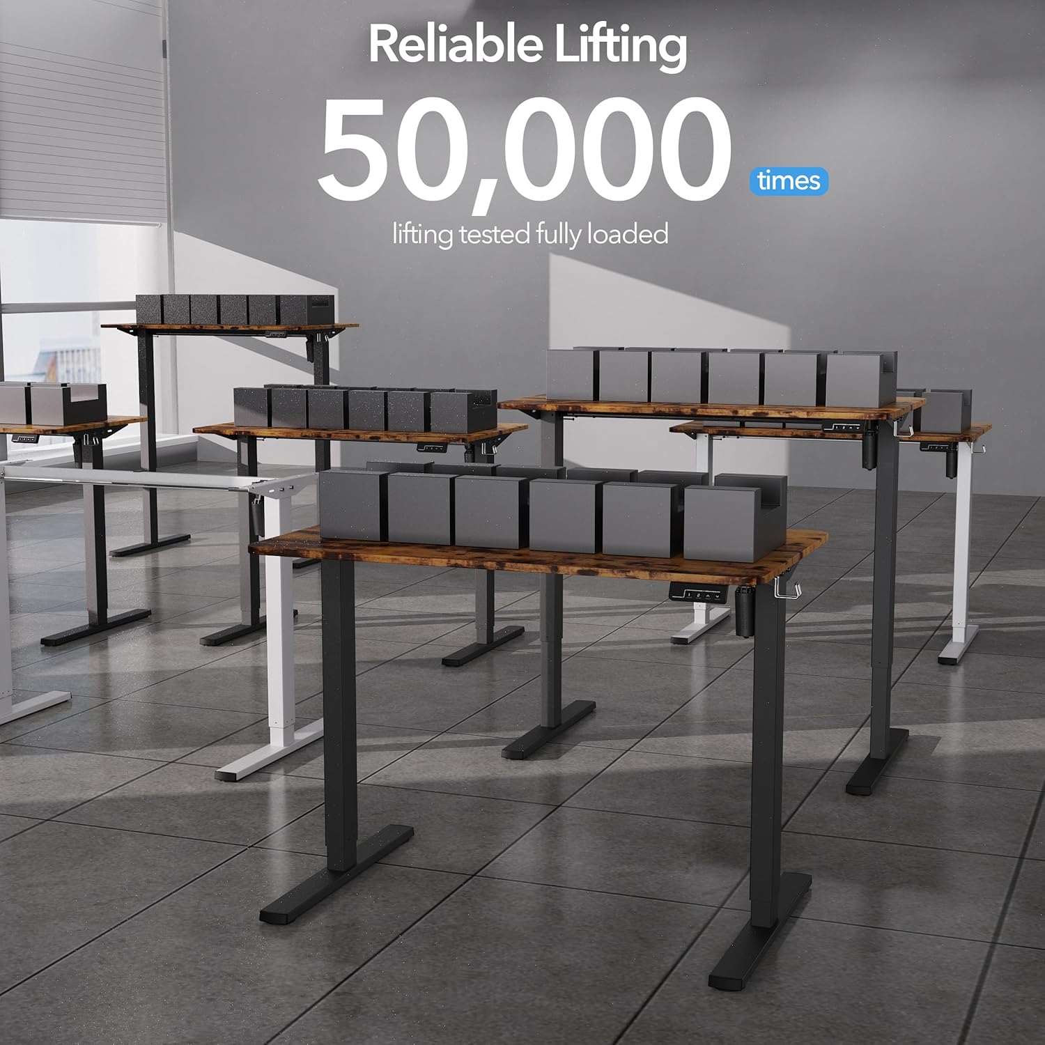 - Premium Quality & Stability: Crafted with an industrial-grade alloy steel frame and FSC-certified wood desktop, our standing desk provides exceptional stability, supporting up to 154 lbs, even after 50,000 tests.