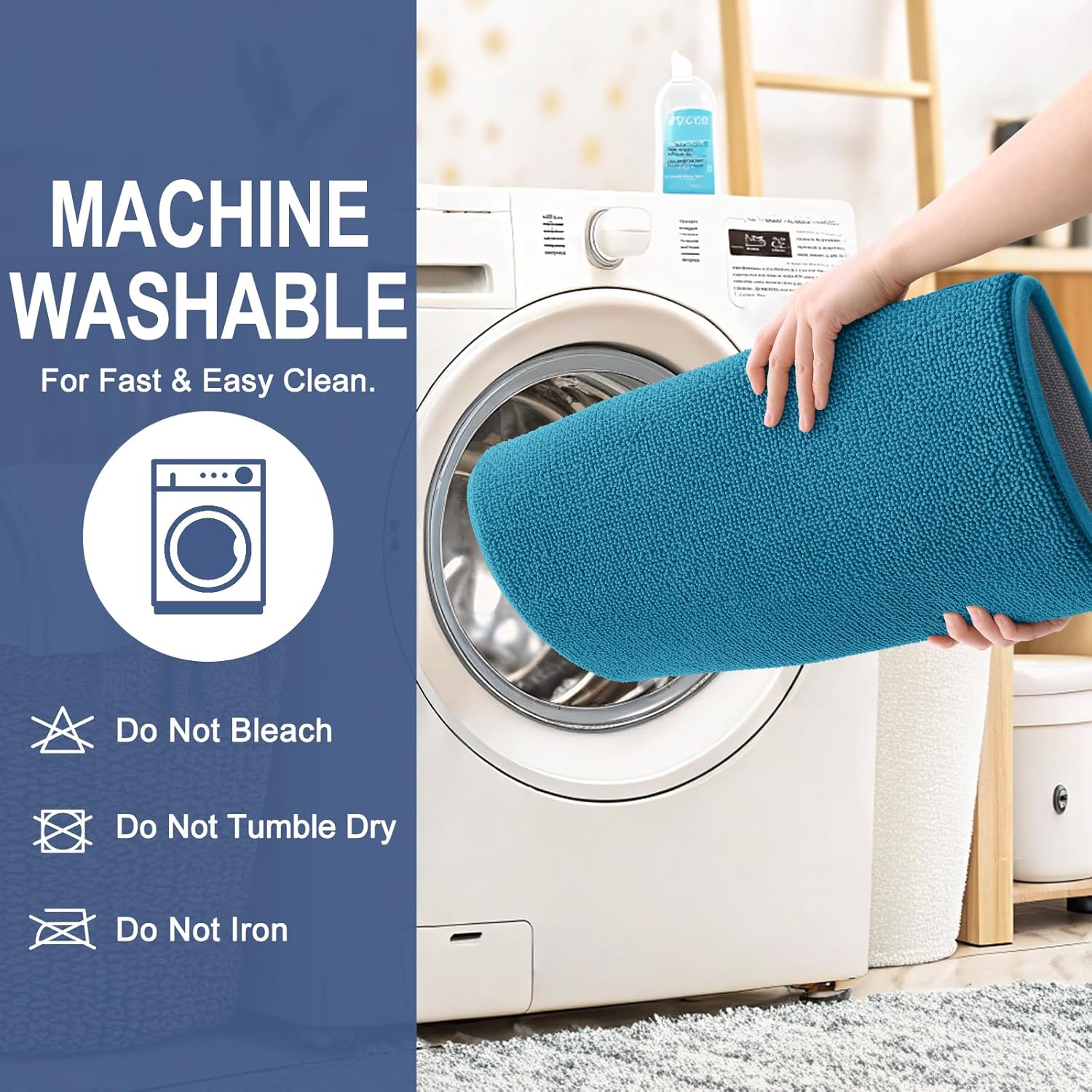 - [Easy to Clean & Care] Our bathroom mats are machine washable. Simply place the mats in the washer using cold water on the gentle cycle. Do not use chlorine or bleach. Tumble dry on low heat or lay to air dry. The color of the bath mats will not fade.