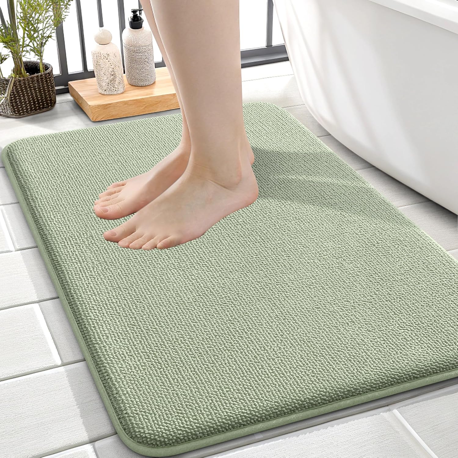 OLANLY Thick Memory Foam Bath Mat Rug 24x16, Extra Soft Absorbent Bathroom Rug, Quick Dry Bath Mats, Non-Slip, Machine Washable Carpet for Bathroom, Tub and Shower, Home Decor Accessories, Sage Green
