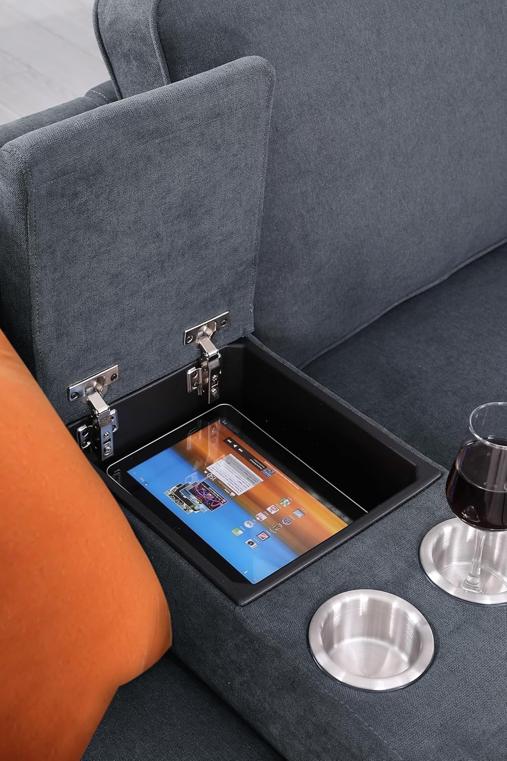 - Innovative Features: Equipped with a cup holder and USB ports, this sectional sofa provides modern convenience. The hidden storage box under the ottoman offers practical space for blankets or magazines, making it a smart addition to any living area