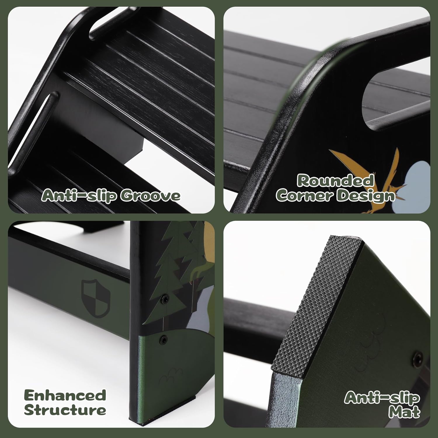 - Multifunctional Use: This two-step stool is not just limited to the bathroom and kitchen, it can also be useful in the bedroom, living room and more; Kids can use it to get in and out of bed, or to reach items on the kitchen counter, or even as a small stool for them to play or read; Its versatility allows kids to be helped in different scenarios, making it a handy assistant in their daily lives