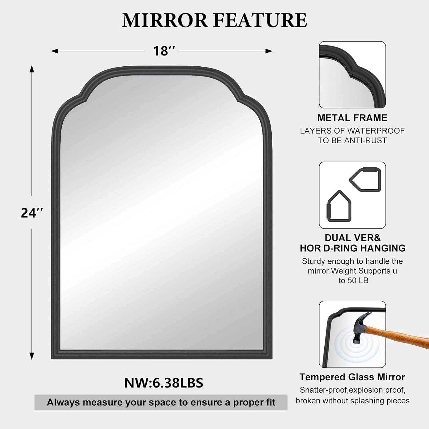 - 【A Unique Elegant-Looking Mirror 】:The black bathroom mirror, overall design and the sleekness of the curves in the frame and it adds a classiness as opposed to a boring straight square mirror. A very versatile mirror that will raise the level of decor anywhere in the house. The rounded corners mirror is classic and will never go out of style.