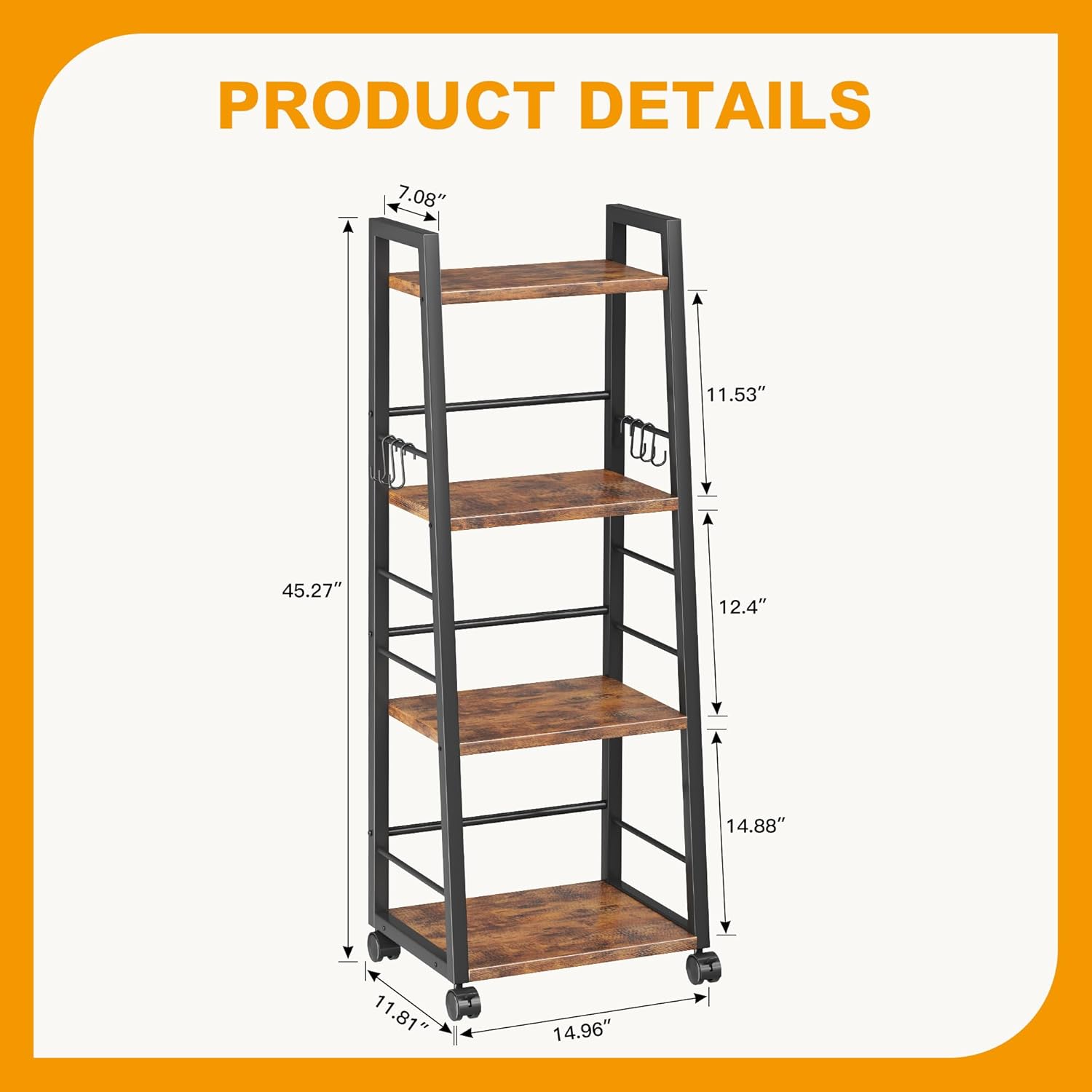 - 【Versatile Storage Solution】Transitional rustic design with industrial metal accents seamlessly blends in living rooms as bookshelf, kitchen as microwave Cart, bedrooms as clothes rack, or offices as Printer Stand