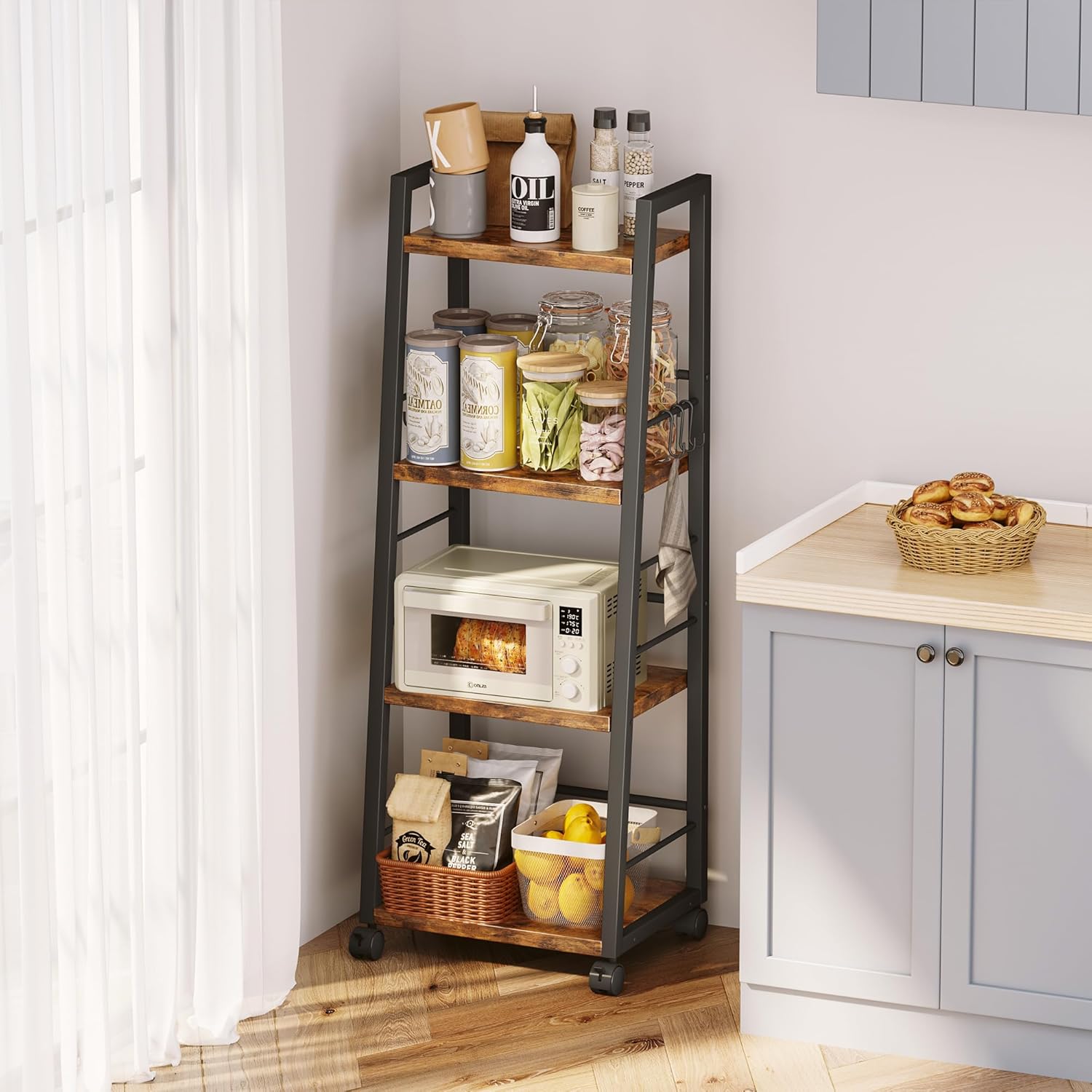 - 【All-in-One Organization System】6 S-hooks + Shelves for cookware , spices, cleaning supplies. Open design provides instant access - ideal as microwave cart/coffee bar station
