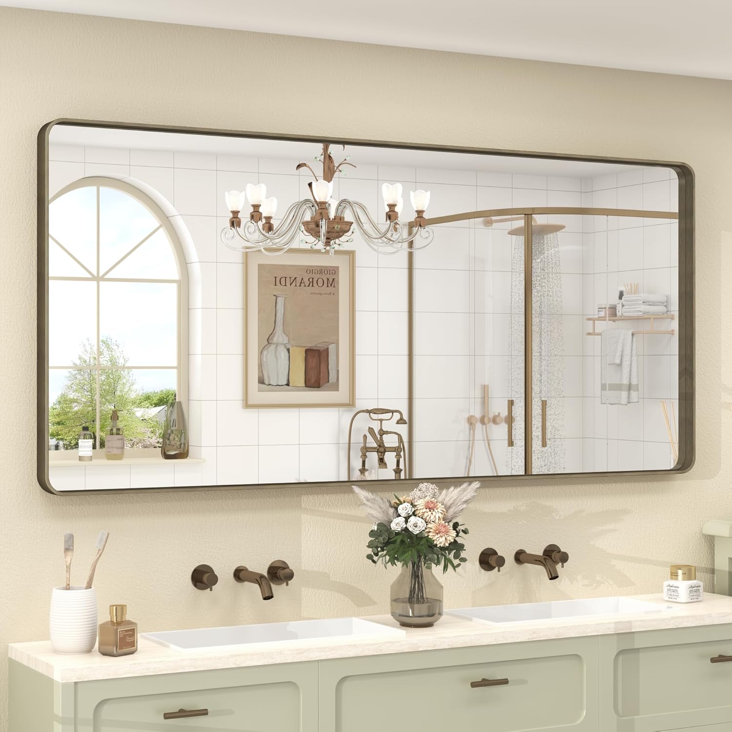 - 【Durable Brushed Bronze Framed Mirror】With round corner metal frame, CHARMOR bronze bathroom mirror looks elegant and feels smooth. The frame material is premium alumium alloy with brushed texture, which is stylish and more durable. Light weight, good corrosion resistance and wear resistance.