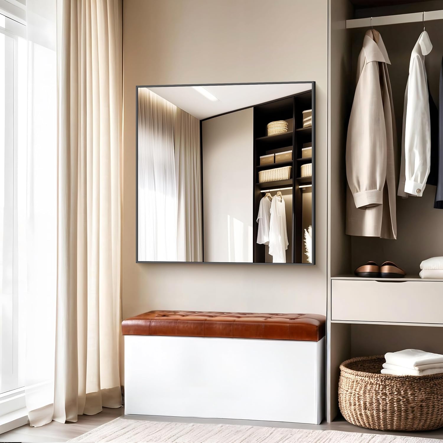 - LARGE SIZE:48x48 inch large bathroom mirror adds a sense of space to the room and adds depth to your interior. It combines style and practicality, making it an ideal size for furniture decoration