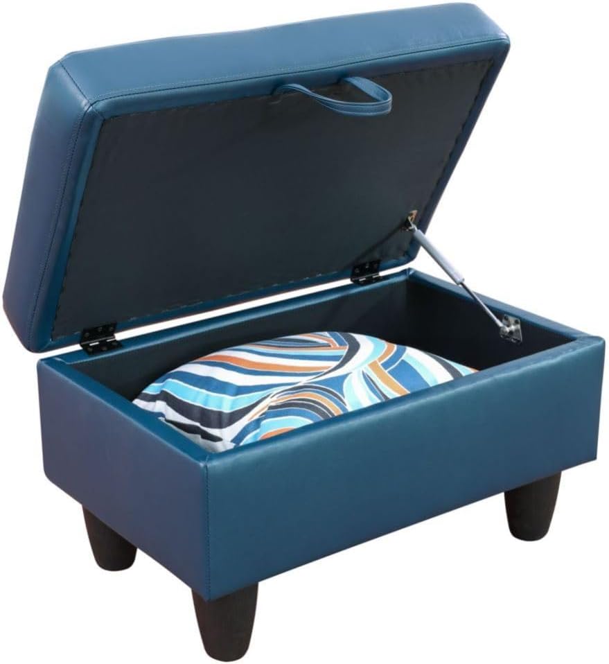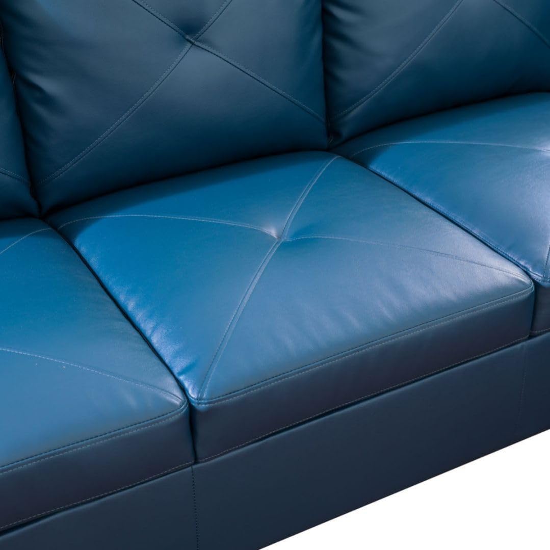 Deep Blue L-Shaped 3-Piece Faux Leather Sofa with Storage Ottoman Set, Sectional Couch Sofa Set for Living Room, Office, Small Space