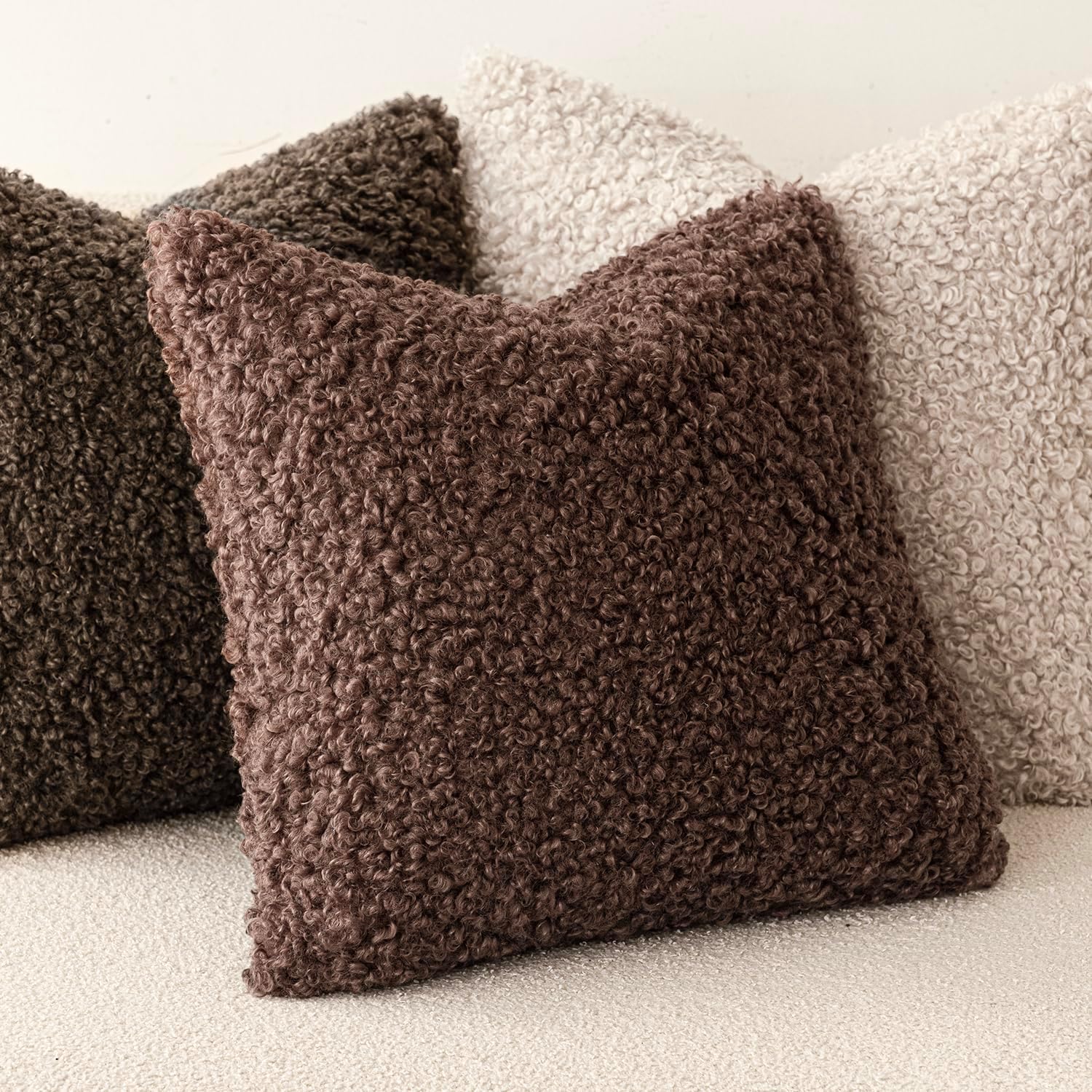 - The shearling pillow cover was designed for a tight curly texture, soft, plush and cozy, offering all the warmth and comfort in winter.