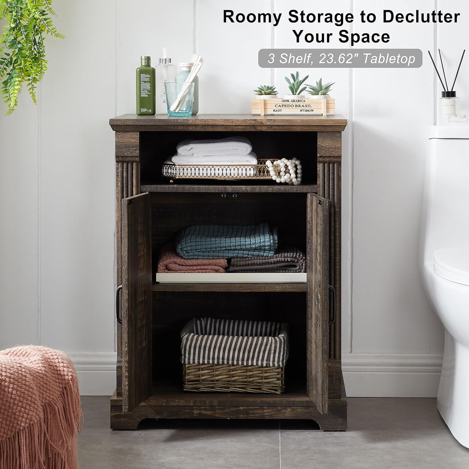 - [Space-Smart 24" Cabinet for Every Room]: 15.35"D x 23.54"W x 30.71"H slim profile fits tight spaces! Use as bathroom vanity storage, kitchen pantry organizer, or living room display cabinet. Adjustable shelves adapt to towels, linens, décor – maximize vertical storage anywhere