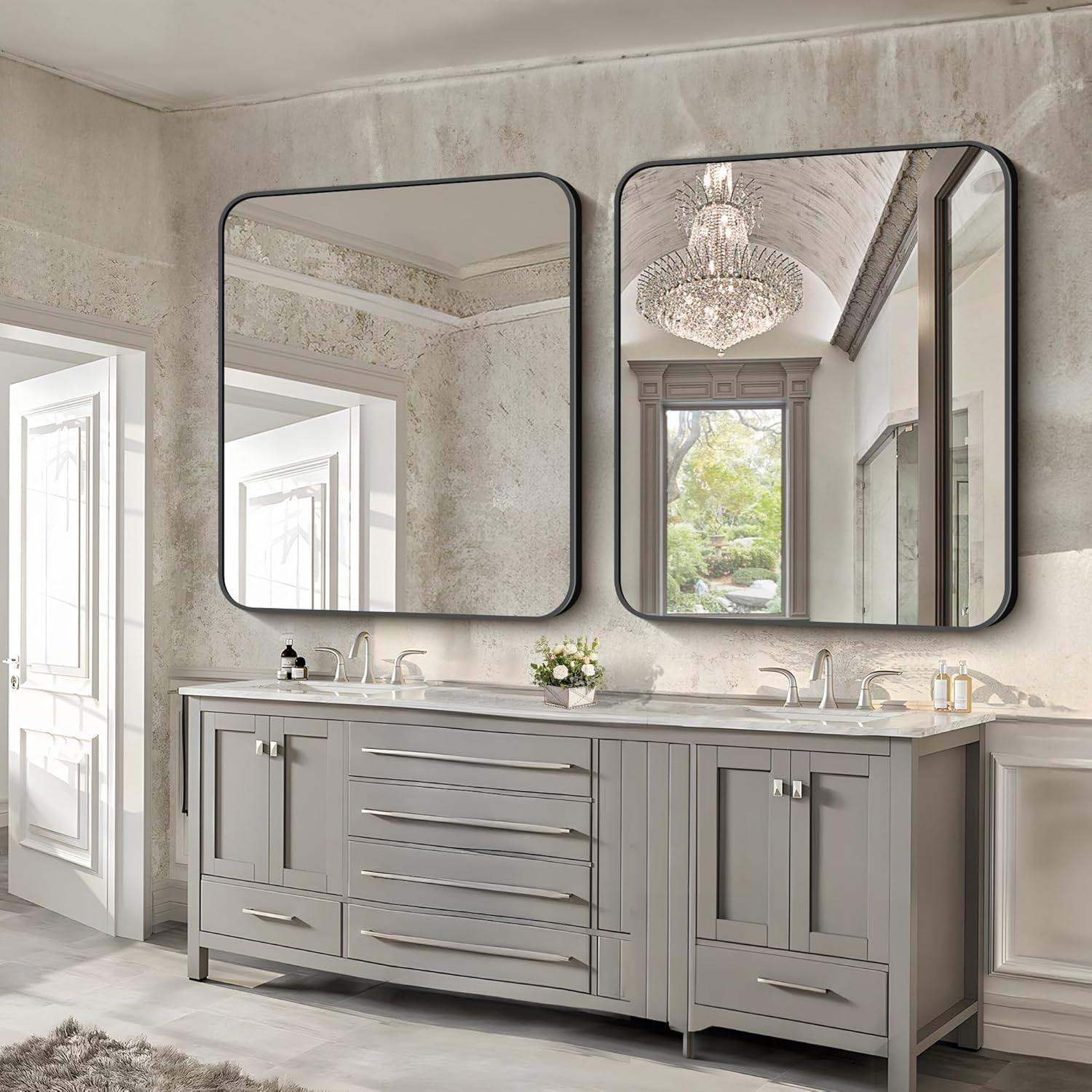 - Rounded Corner Design:The rounded corner rectangular mirror makes your bathroom more elegant and classy, which especially attracts your eyes. Ideal for decorative bathroom and make the space more brighter and more spacious.