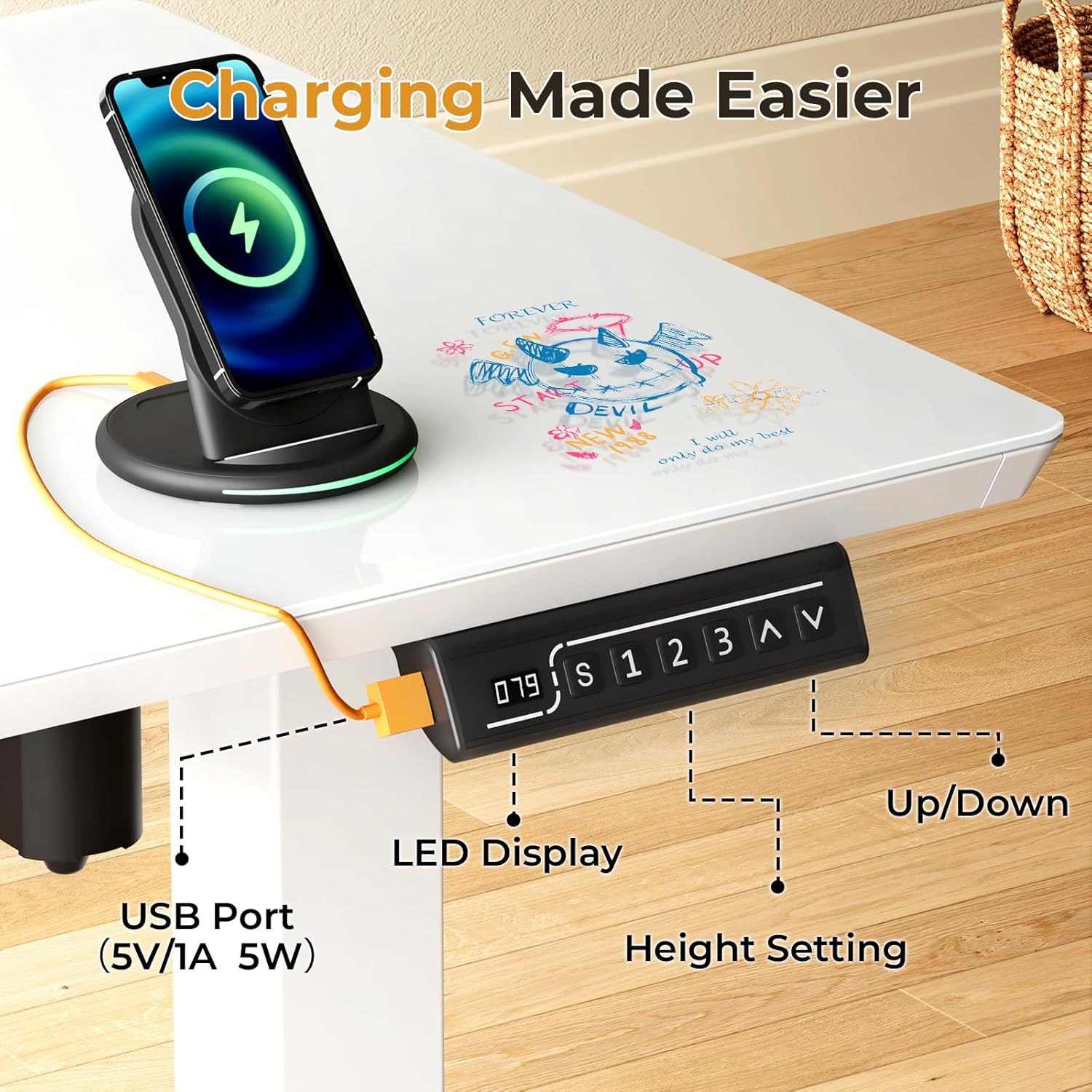 - Special Feature : Adjustable Height, Built-In USB Outlet, Electric