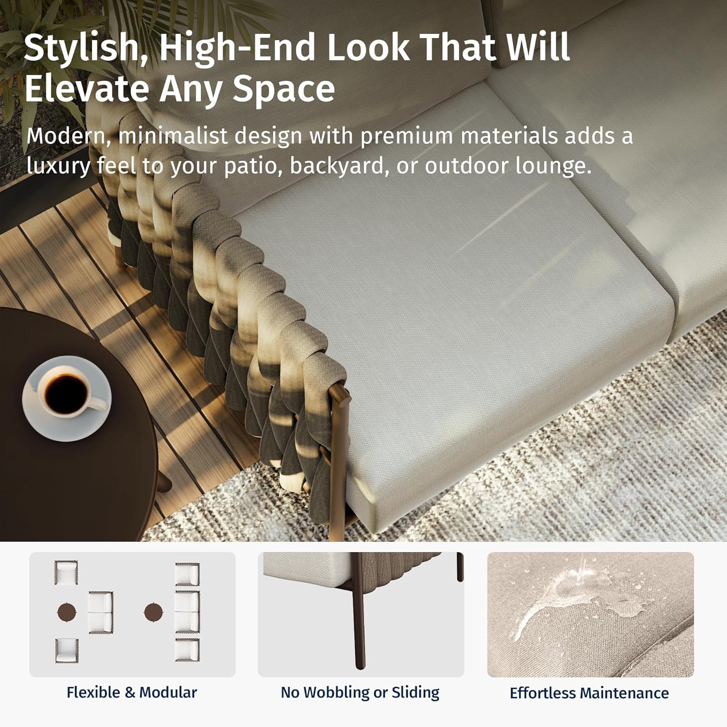 - TRANSFORM YOUR BACKYARD IN STYLE: Designed by EAST OAK with a patented modern look, this conversation set instantly elevates any outdoor space. Its sleek, contemporary design adds a sophisticated touch to patios, balconies, and gardens—creating a stylish, inviting atmosphere for relaxing or entertaining
