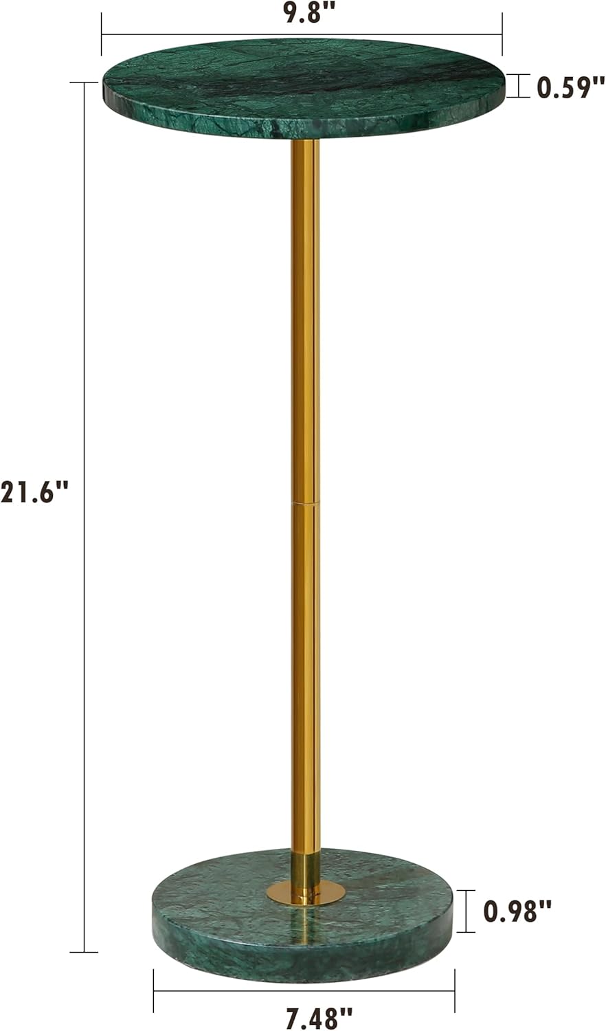 Φ9.8-inch Marble Round Drink Table, Stone Finish Pedestal End Table for Living Room, Weighted Base Small Accent Side Table for Small Space - Emerald Green