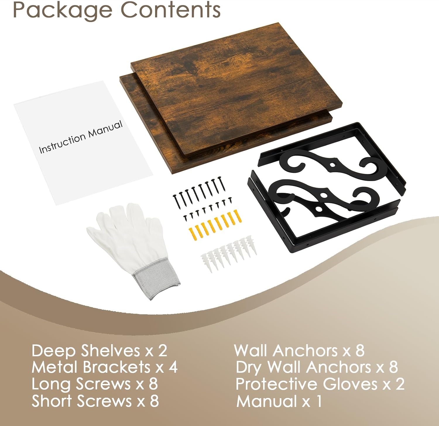 - ăAdd Finishing Touch to SpaceăBoasting a retro-chic design, this wall mounted shelf effortlessly integrates with any decor style. Rusticity wood grain and exquisite S-shaped iron brackets flaunt visual interest and romance. It serves as both a practical storage solution and a stylish focal point