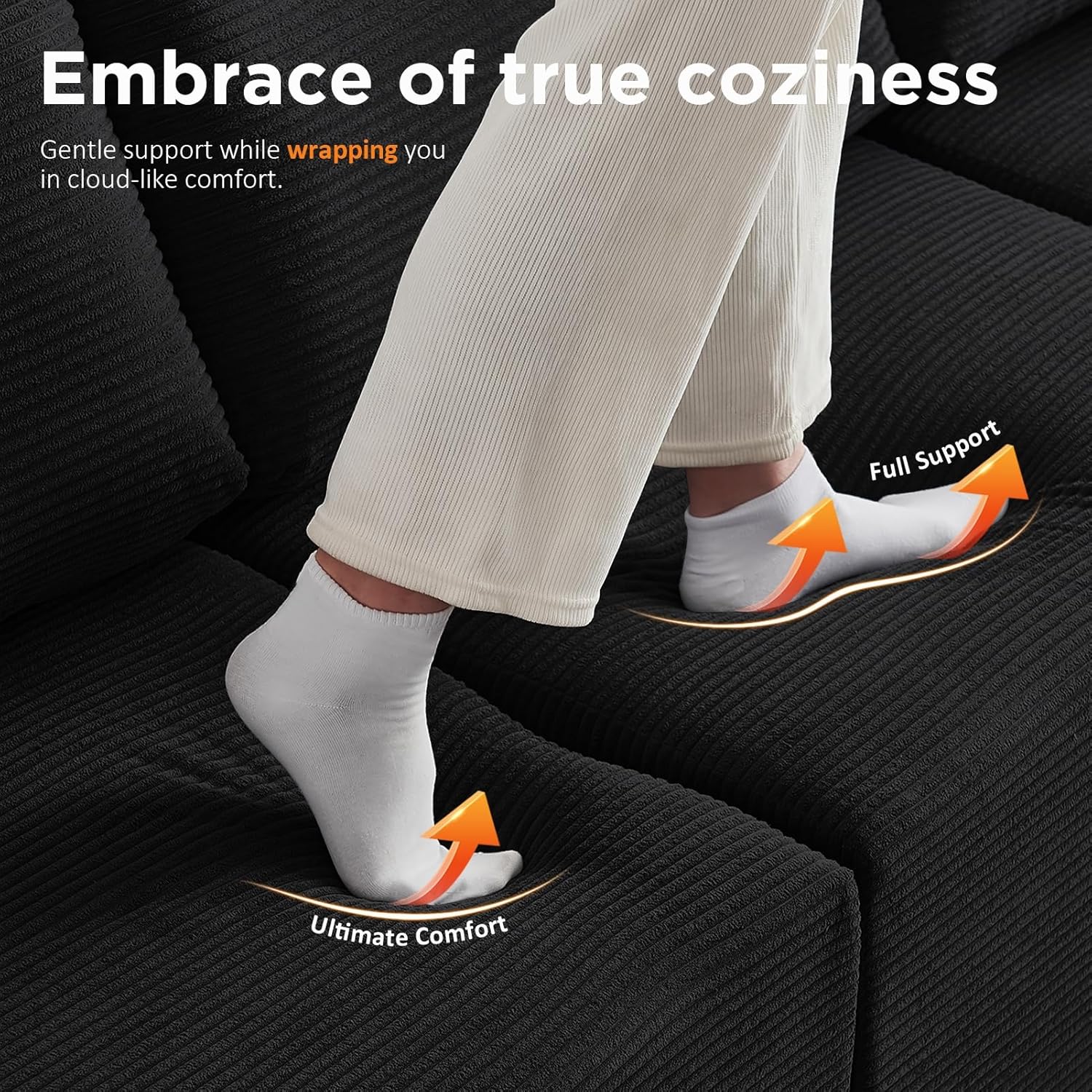 INGEROOM 108" Cloud Sectional Couch, Modular Sectional Sofa with L-Shaped Chaise, Modern Plush Corduroy Couch for Living Room Bedroom(Black)