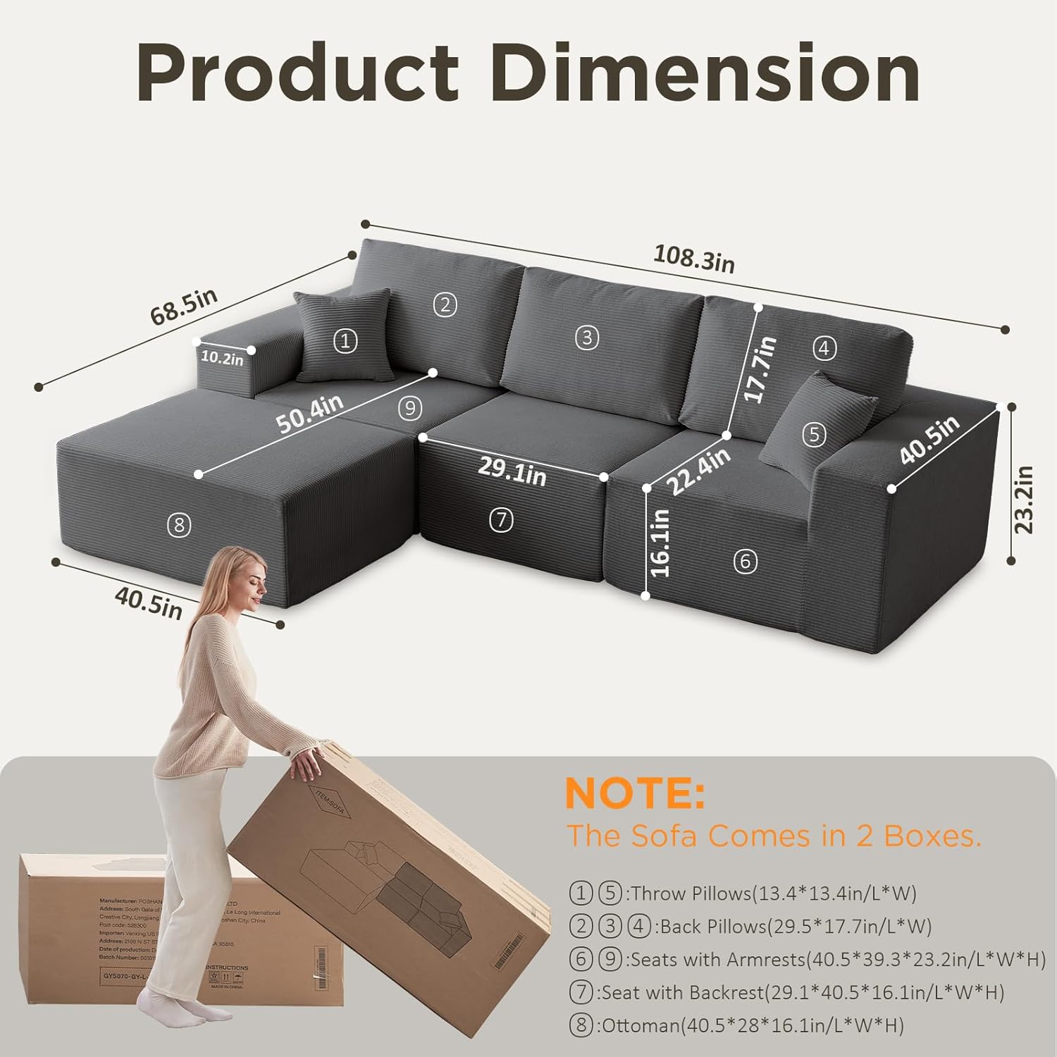 - 【Modular L-Shaped Cloud Couch】108" L-shaped sectional for versatile layouts. Works as couch, sofa, or modular sectional, maximizing corners and offering flexible standalone or extended setups