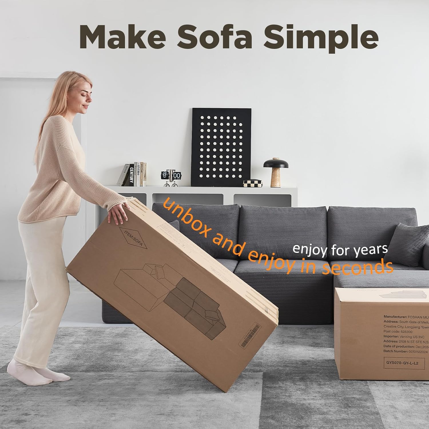 - 【No Assembly Sectional Sofa】Arrives pre-assembled, no tools needed. Just unbox, fluff cushions, and watch it expand in 72 hours—perfect for renters and quick living room upgrades