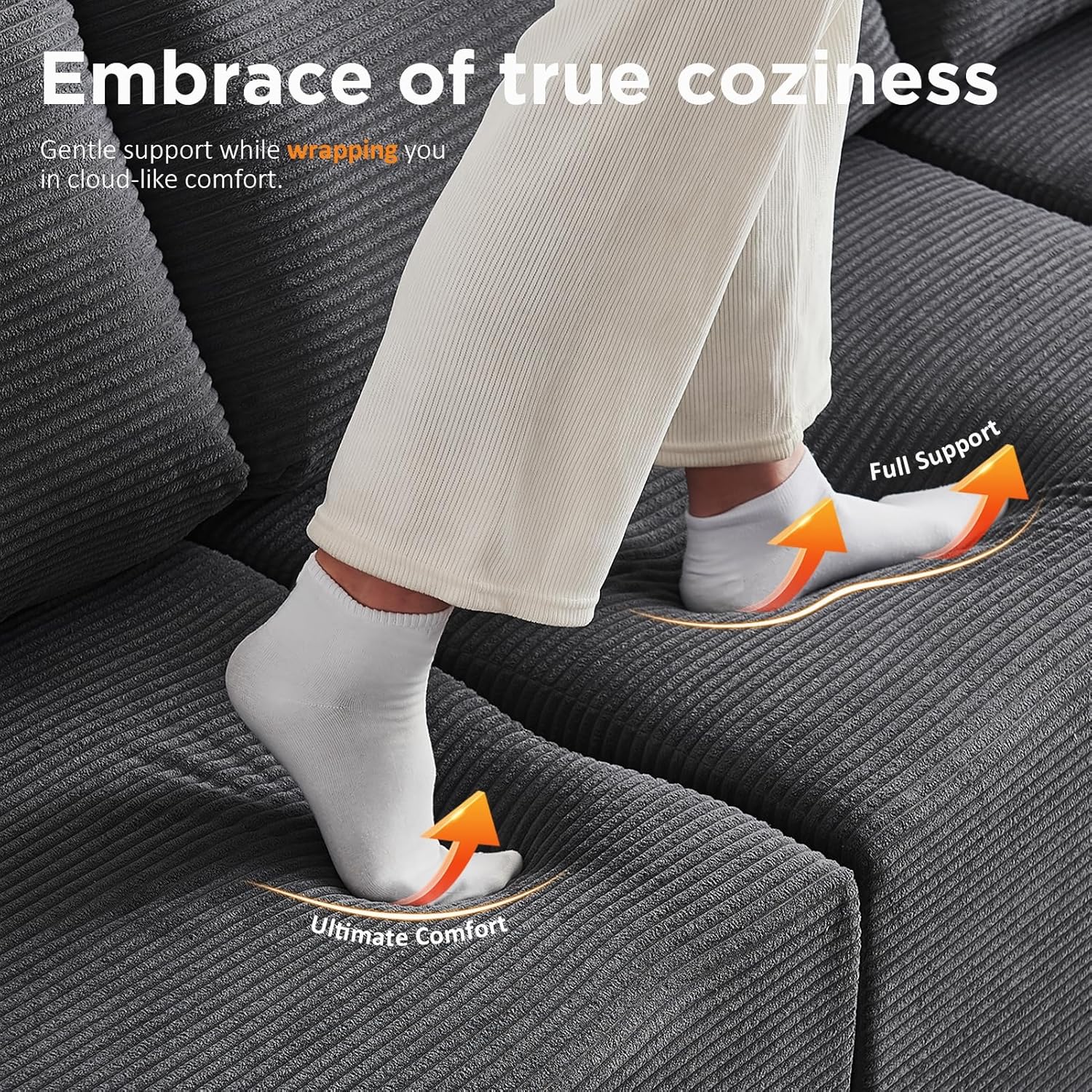 - 【Plush Corduroy Cloud Sofa】Soft, durable ribbed corduroy resists pet hair & spills. High-resilience foam keeps shape, providing cloud-like support for movies or gatherings