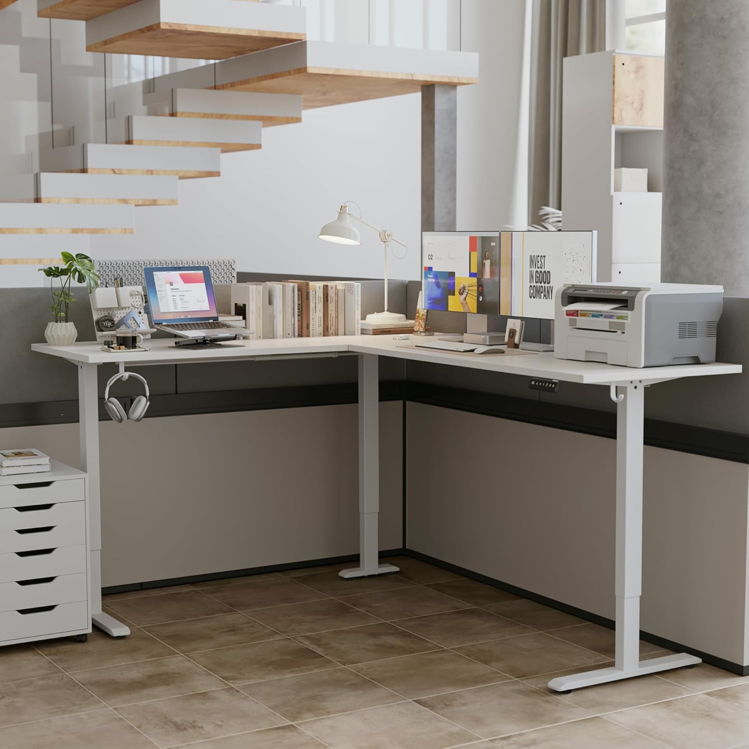 Agilestic L-Shaped Standing Desk Adjustable Height, Electric Corner Standing Desk, Sit Stand Up, 75x61 inch Sit Stand Computer Table, White