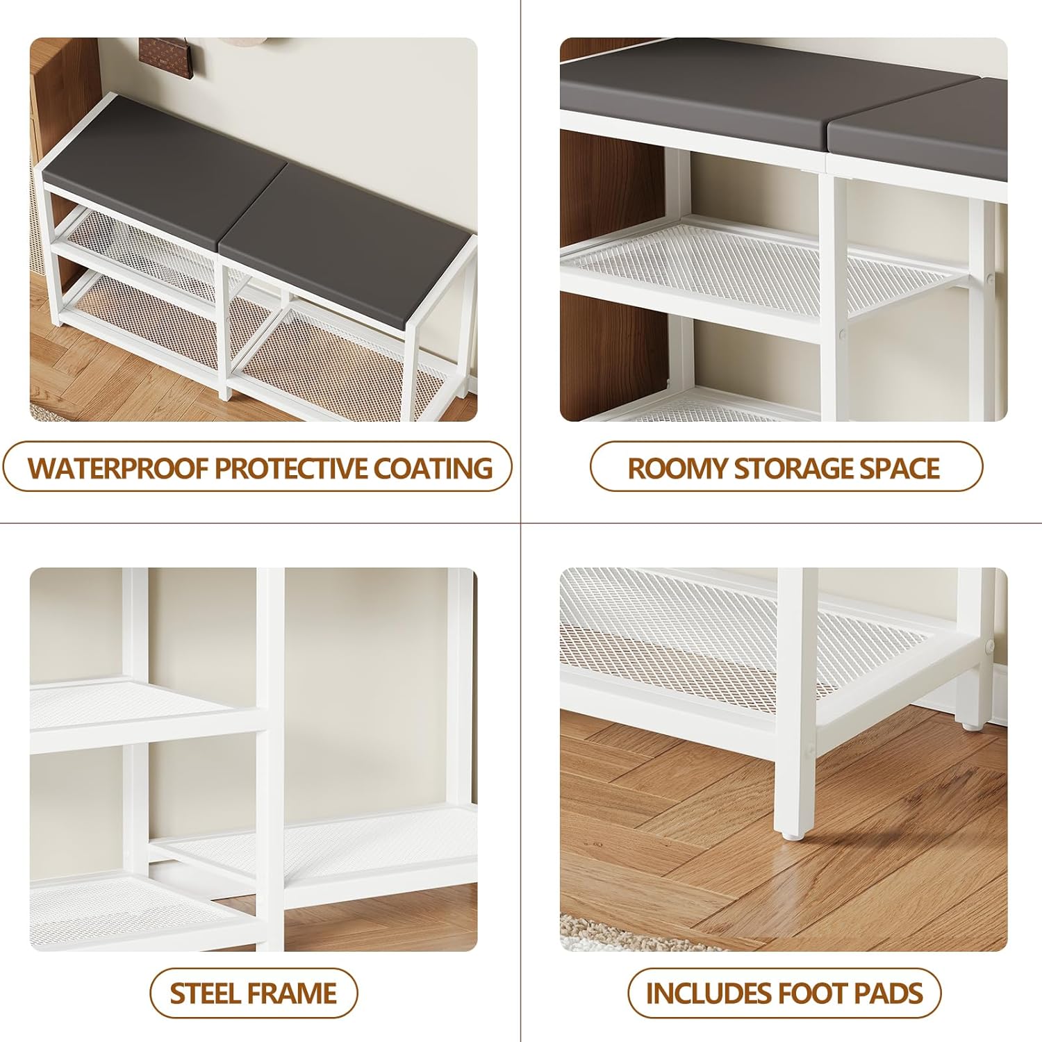 ZHOOGE Shoe Bench & Rack Storage Bench with Seat Cushion, Stable Entryway Bench Holds Up to 300 lb, (35" L x 12" W x 17" H, White)