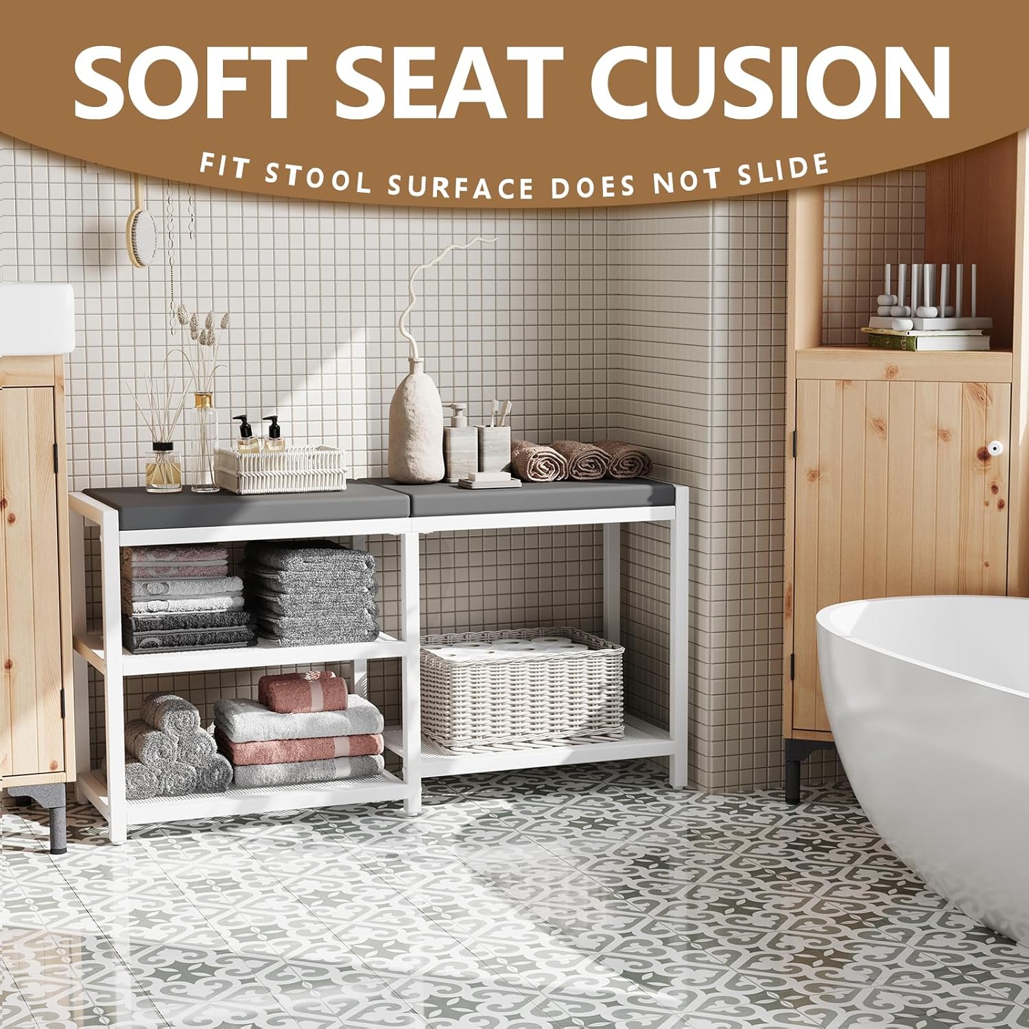 - Strong Support: This shoe rack bench is built with a robust powder-coated steel frame, offering firm and reliable support. Say goodbye to hard, stone-like stools and try our comfortable Small Shoe Bench! It not only provides durability but also has a maximum static load of 300 lb, making it a strong seating option for your needs.