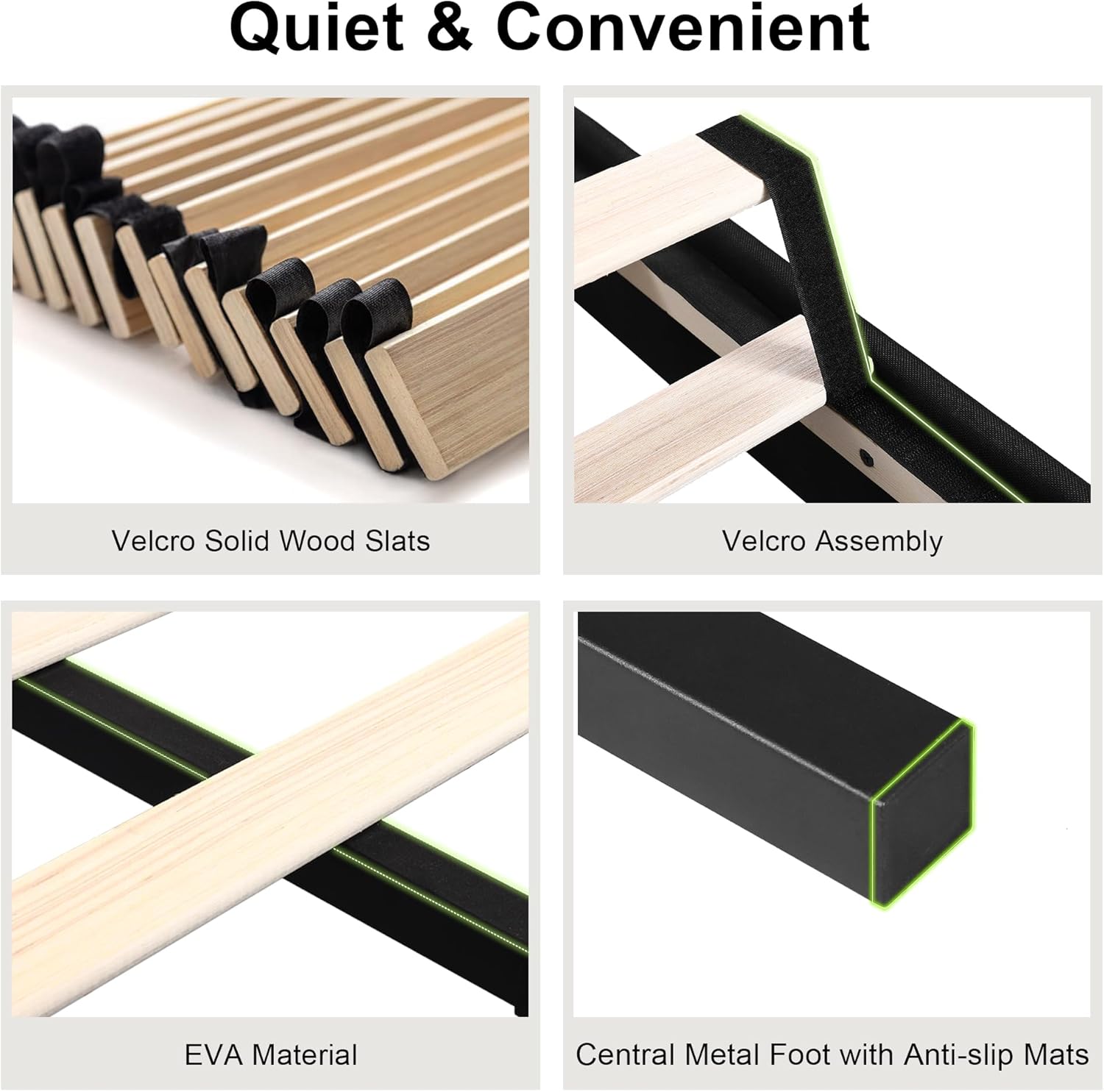 - Carefully Conceived Design: Embedded no-sliding design keeps the mattress in place all night. EVA Foam is attached between the slats and frame, and central-metal legs add the foot pads, enjoy a noiseless night