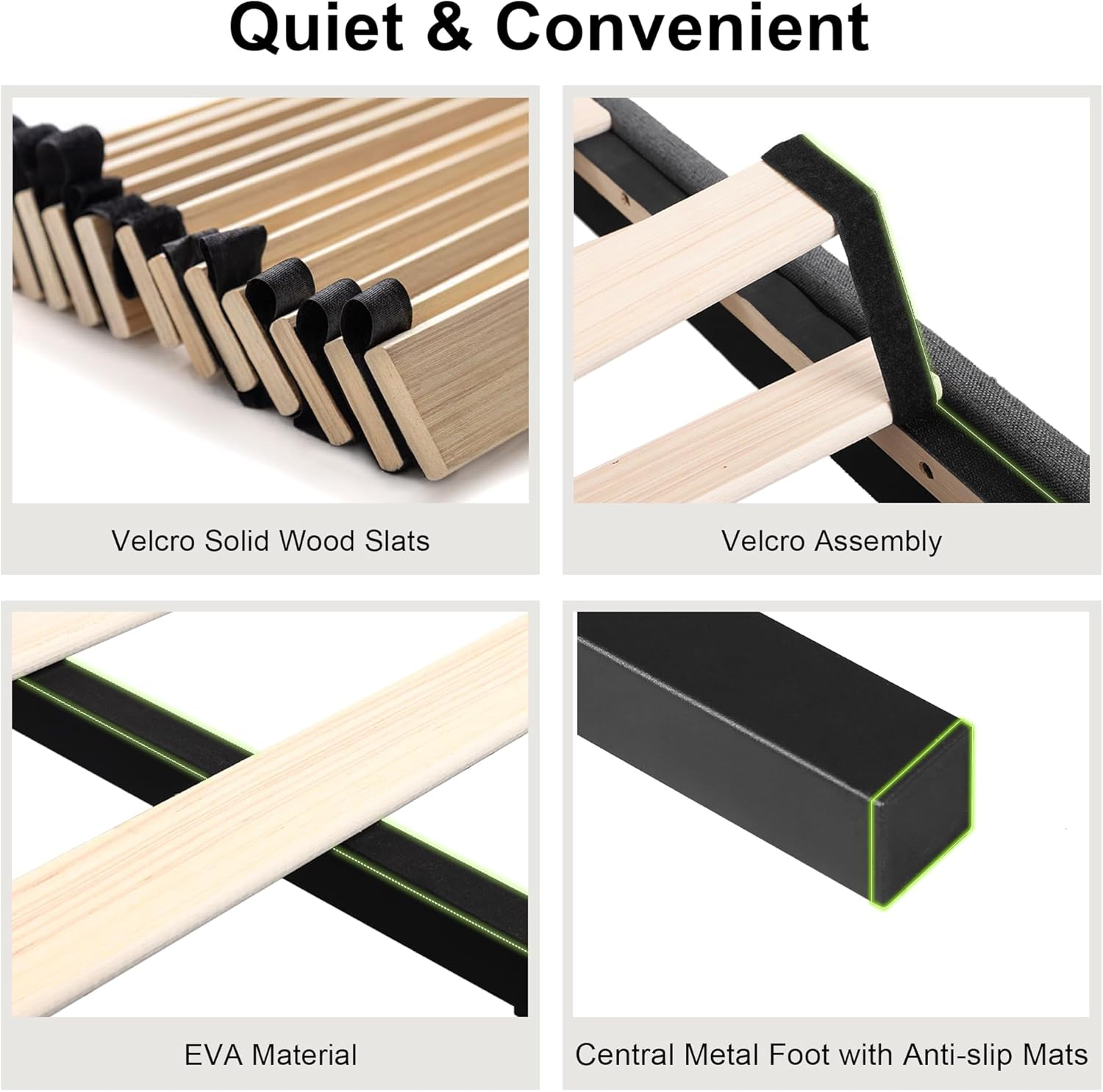 - Carefully Conceived Design: Embedded no-sliding design keeps the mattress in place all night. EVA Foam is attached between the slats and frame, and central-metal legs add the foot pads, enjoy a noiseless night
