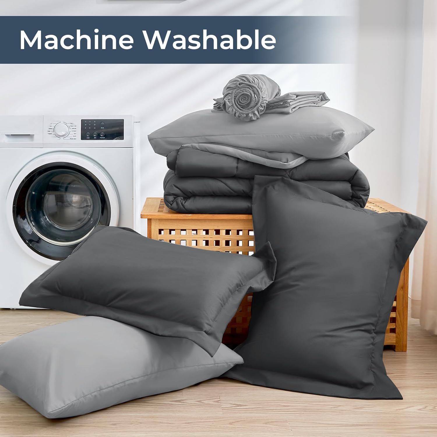 HEVUMYI 120x98 Oversized King Comforter Set - 7-Piece All Season Bed in a Bag Oversized King, Ultra Soft Bedding Set with 120 x 98 Comforter, Flat Sheet, Fitted Sheet, Pillowcases, Dark & Light Grey