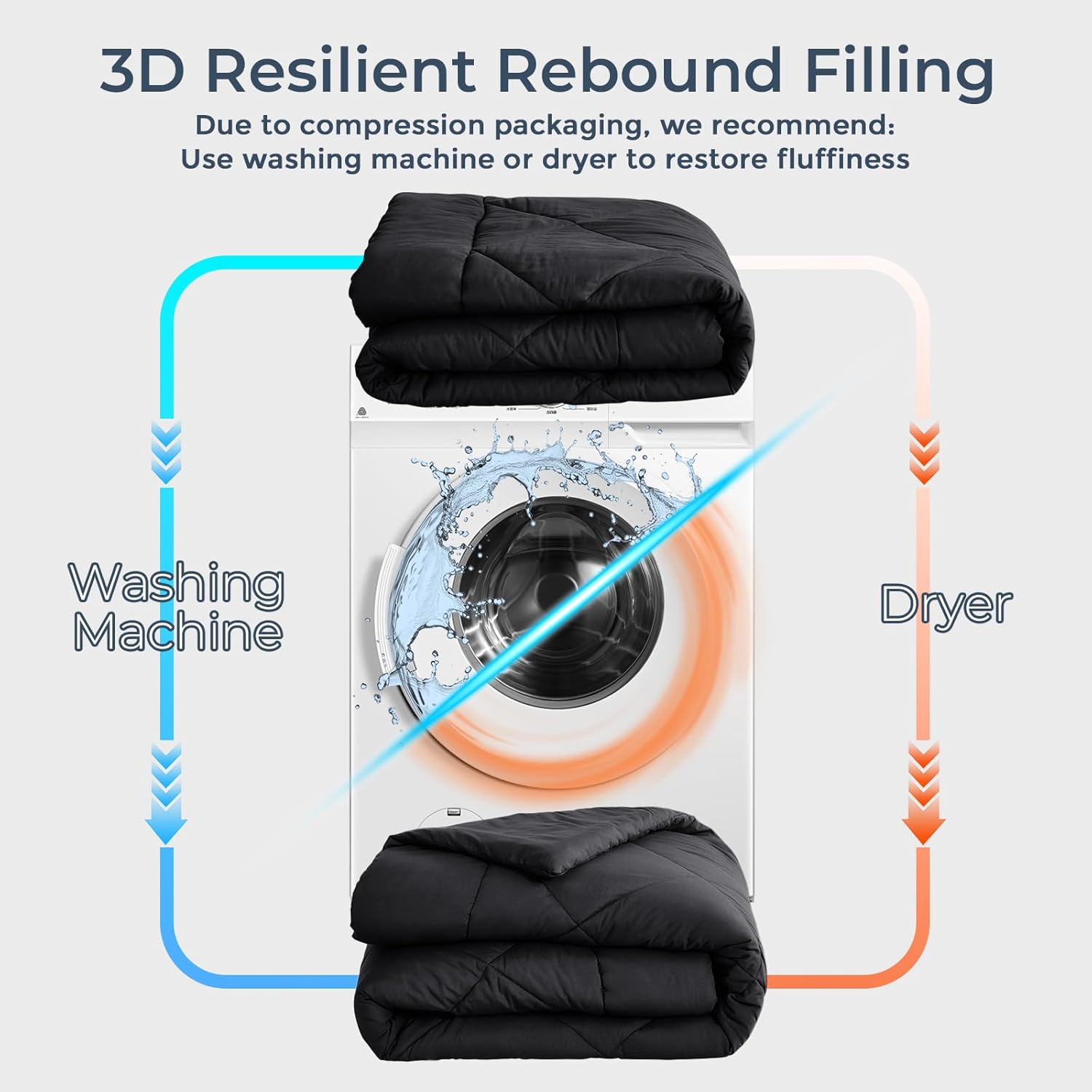 HEVUMYI Black Oversized Queen Comforter Set - 7-Piece All Season Bed in a Bag Oversized Queen, Ultra Soft Bedding Set with Comforter, Flat Sheet, Fitted Sheet, Pillowcases, Pillow Shams