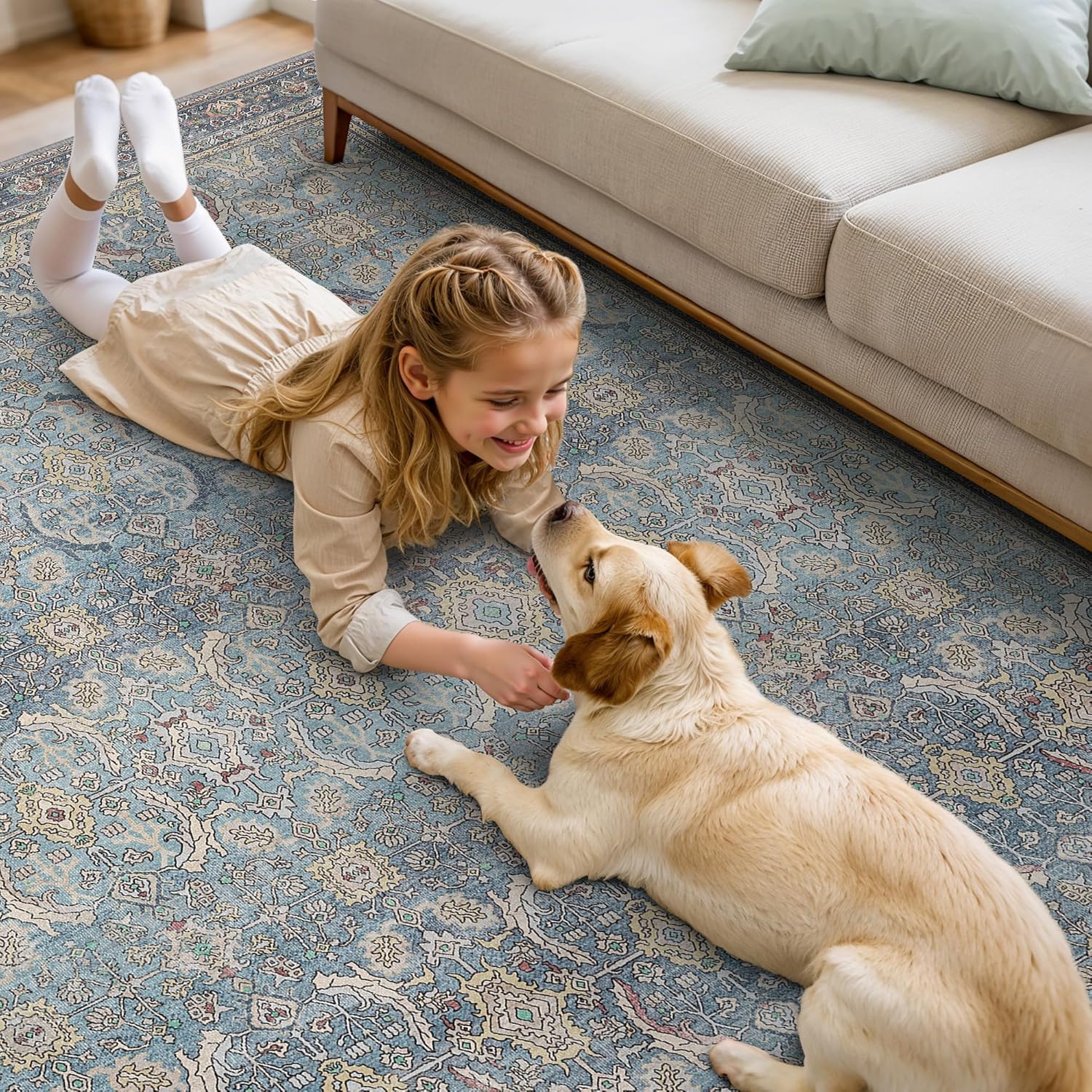 - Kids & Pets Friendly:Our rug is specifically designed to accommodate the needs of families with pets and children, featuring a low pile for easy care and durability. It effectively resists the accumulation of pet hair and withstands everyday wear and tear, making it a prime choice for active homes.