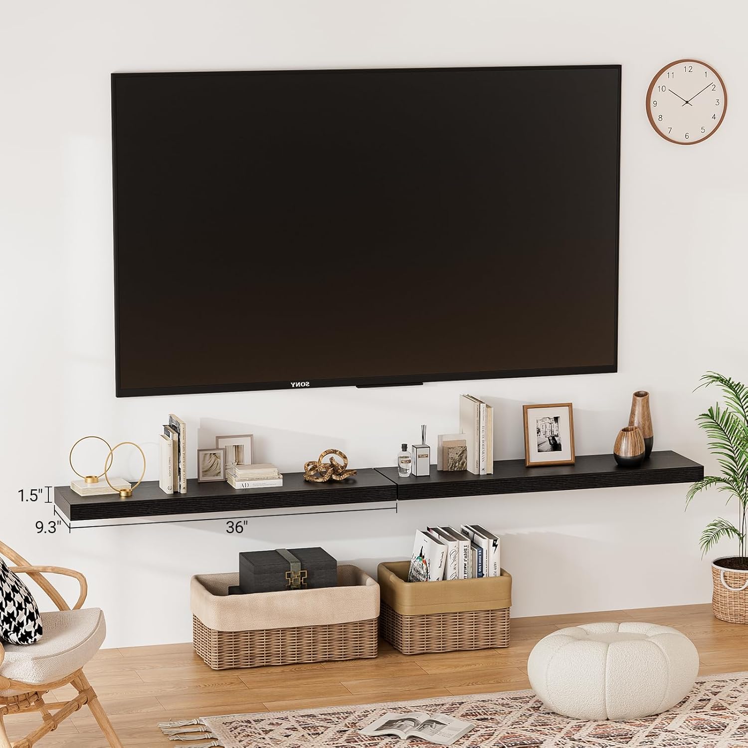 - ăModern Rustic LookăOur 36 inch floating shelves for wall are made from durable engineered wood,which blends well with modern and rustic farmhouse wall decor alike.The black floating shelves is available in colors & sizes,perfect for storing books,plants,collectibles,etc..