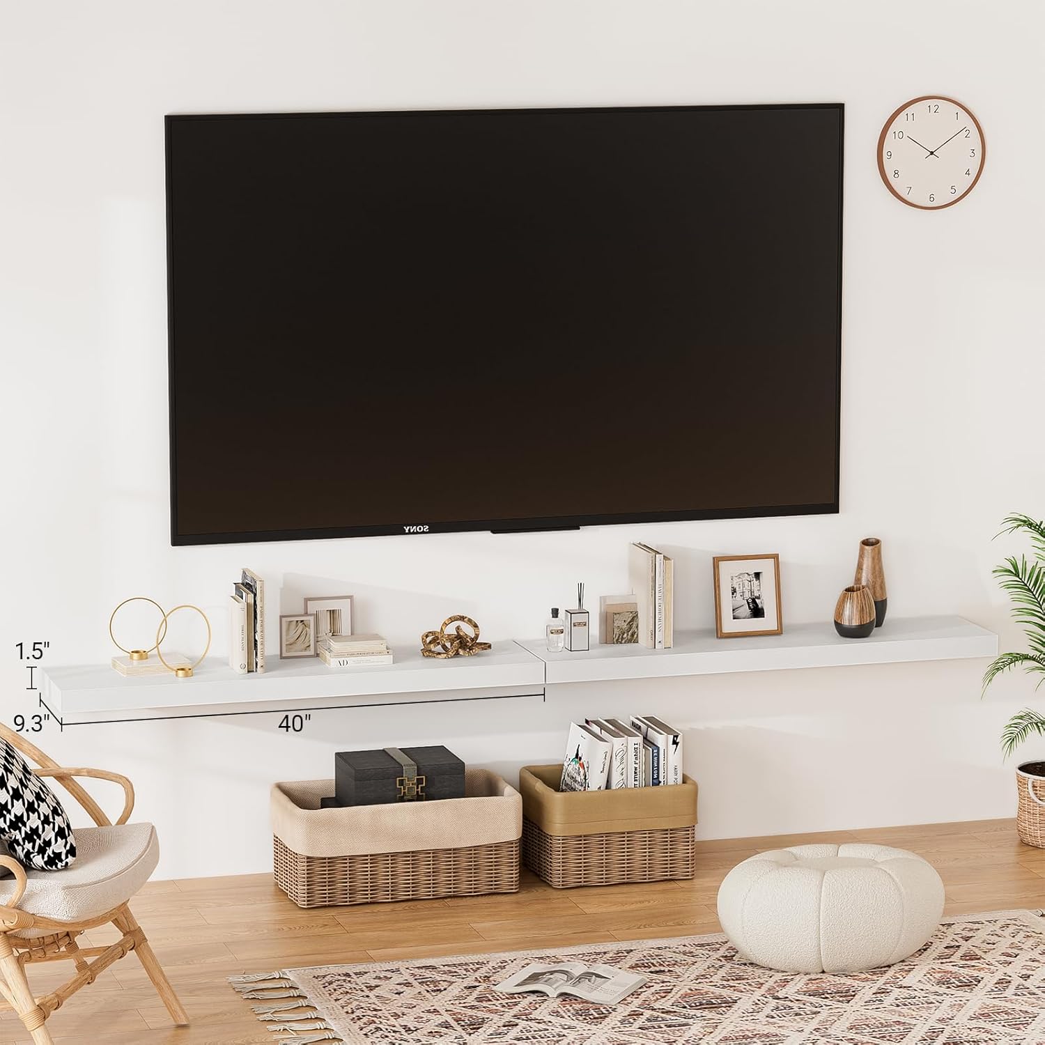 - ăLonger DesignăOur pretty white wall shelves are 40"W x 9.3"D x 1.5"H.Our white floating shelves is longer than traditional designs and can hold more items.The white floating shelf optimize wall space,helping organize essentials without taking up floor space in your home.
