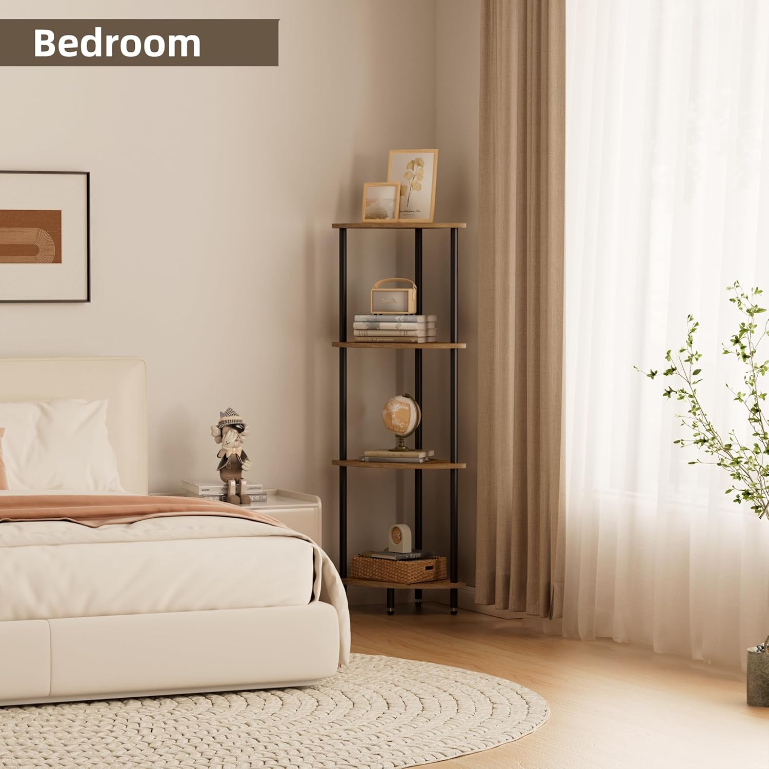 - Multifunctional Corner Shelf: With each tier measuring 11 inches in height and depth, this corner shelves is versatile enough to serve as a bookshelf, display shelf, or plant stand in various rooms such as the living room, bedroom, home office, kitchen, hallway, and balcony.
