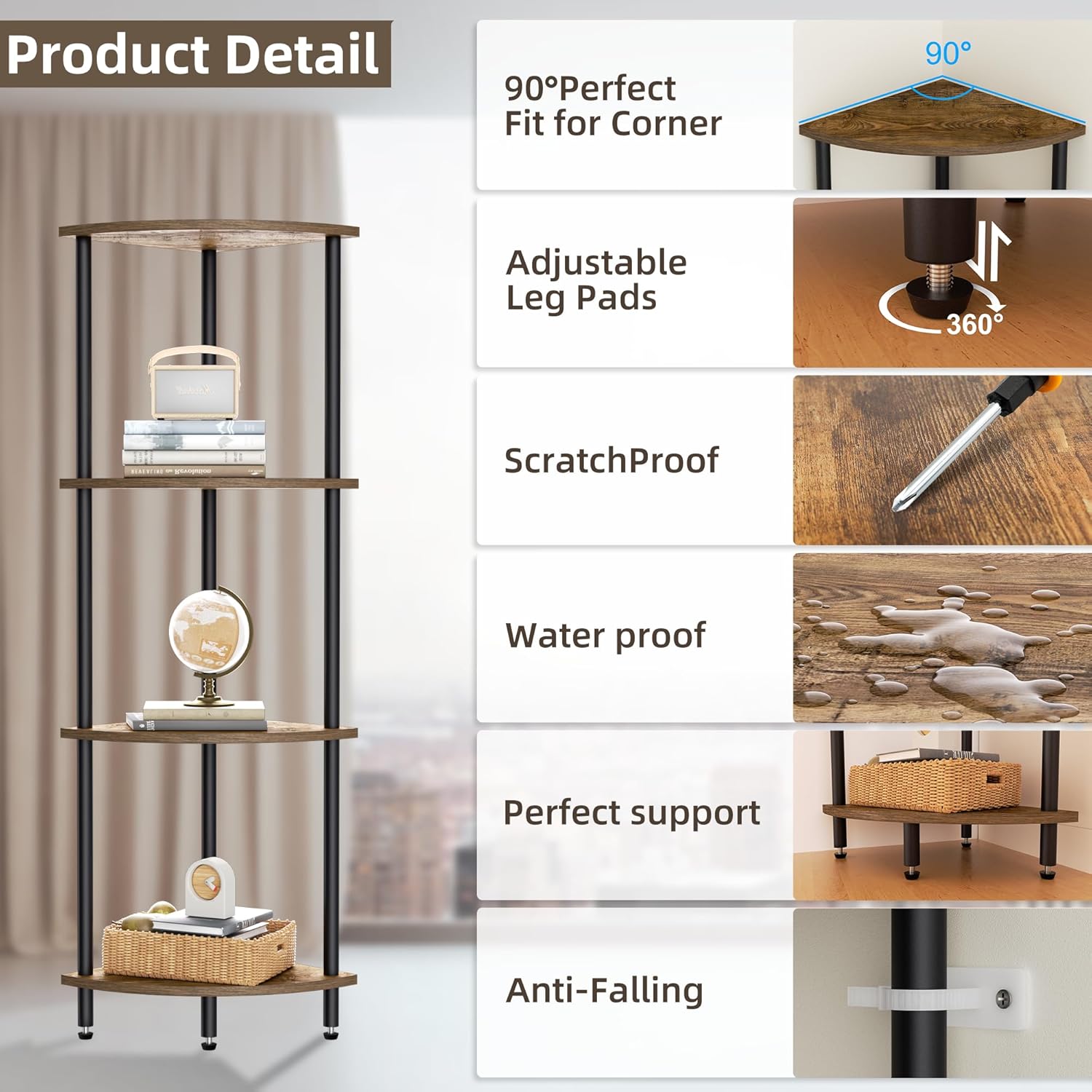 - Easy Installation: The corner shelf unit comes with detailed installation instructions and a helpful video guide, allowing you to set it up quickly in just 5-10 minutes. Remember to tighten all screws and use the anti-tip straps for added security!